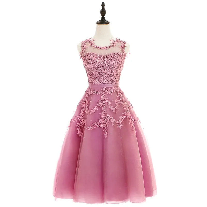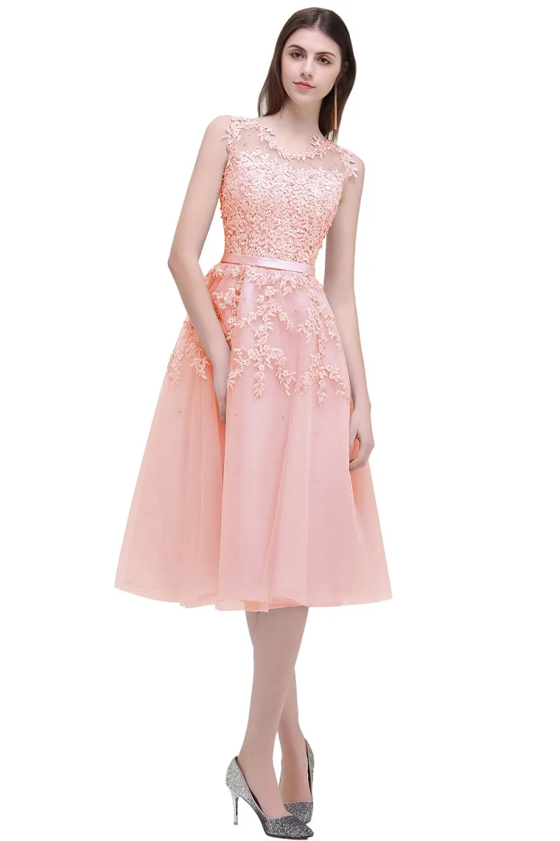 In Stock prom dresses 2018 Sleeveless Short prom dress Lace Applique Beading Gown Party evening dress vestido de festa Curto