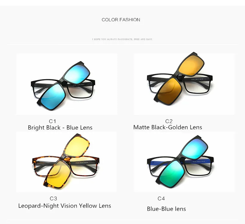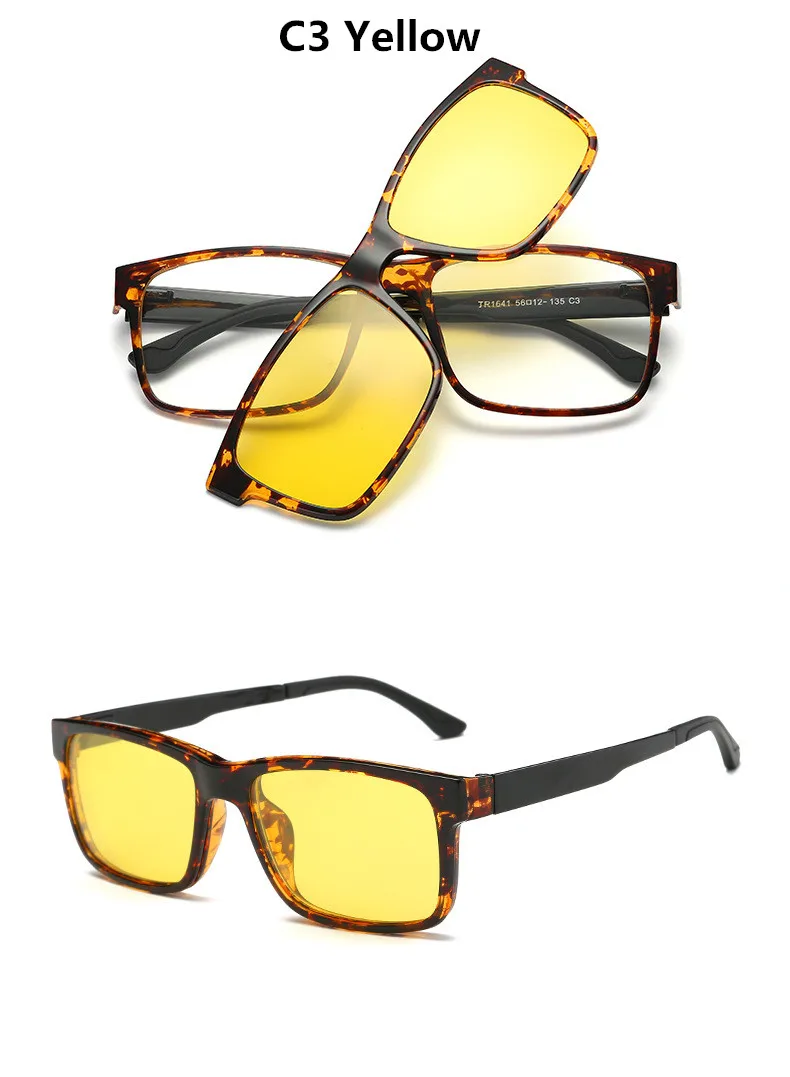 Include Frame Polarized Clip On Sunglasses Men Magnetic Clips Night glasses drive TR90 optical Glasses Frames