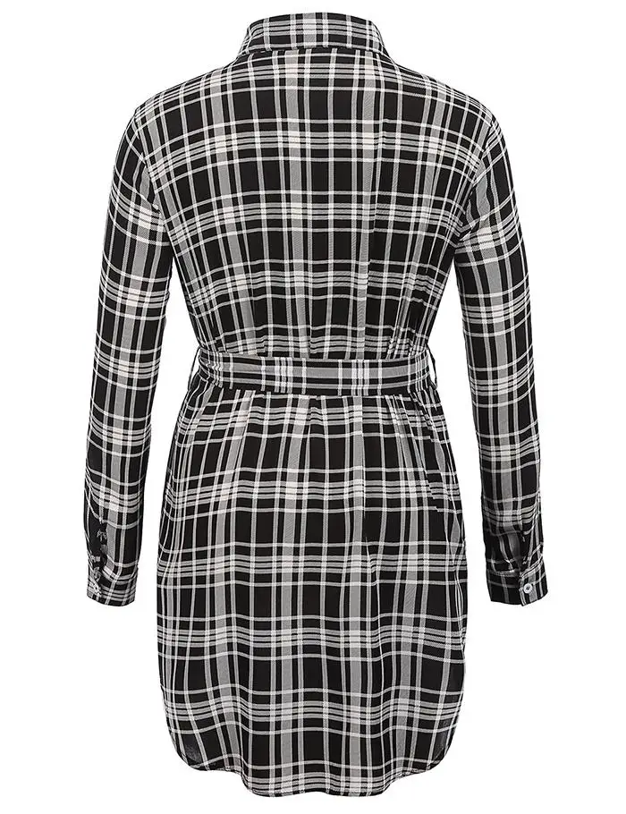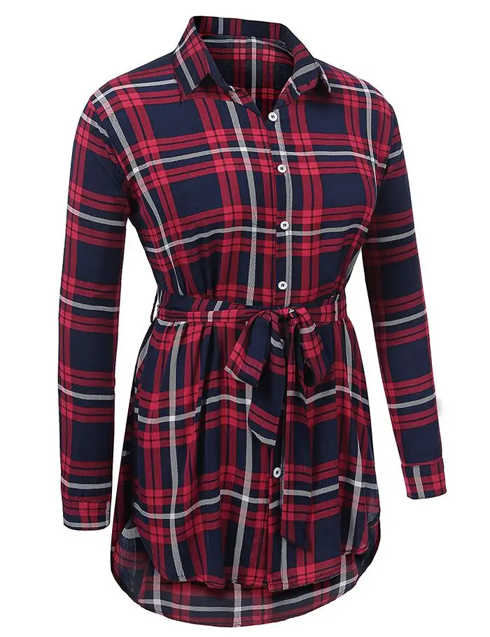 IN'VOLAND Women Blouse Blusas Tops Plus Size XL-5XL Spring Autumn Pullovers Plaid Button Down Loose Shirt Tops Belt Oversized
