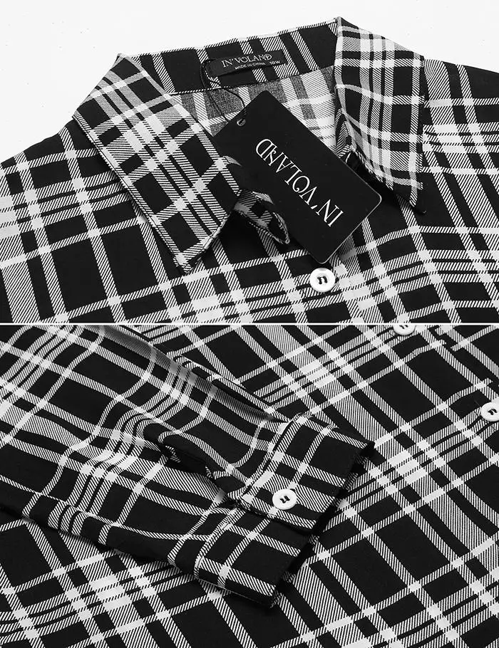 Gender: Women; Sleeve Length(cm): Full;Pattern Type: Plaid; Material: Polyester,Cotton;Collar: Turn-down Collar; Decoration: None;Brand Name: IN…