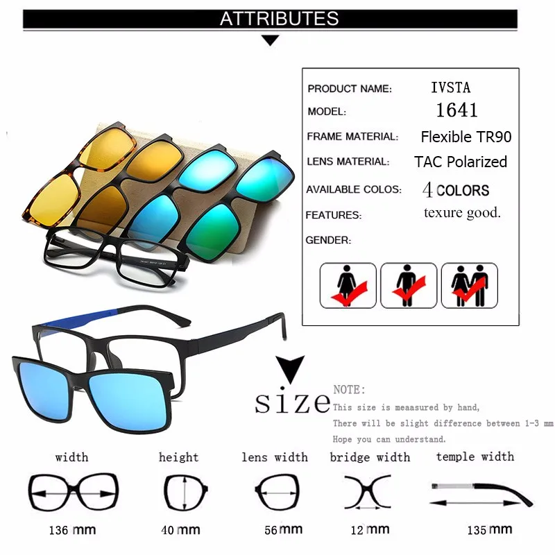 IVSTA Include Frame Polarized Clip On Sunglasses Men TR90 Custom prescription lenses Magnetic clips night glasses drive Magnet