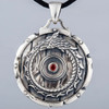 One of our favorite designs featuring the famous Norse serpent over a Viking shield with a red gem in the center. Pendand is one-sided only.