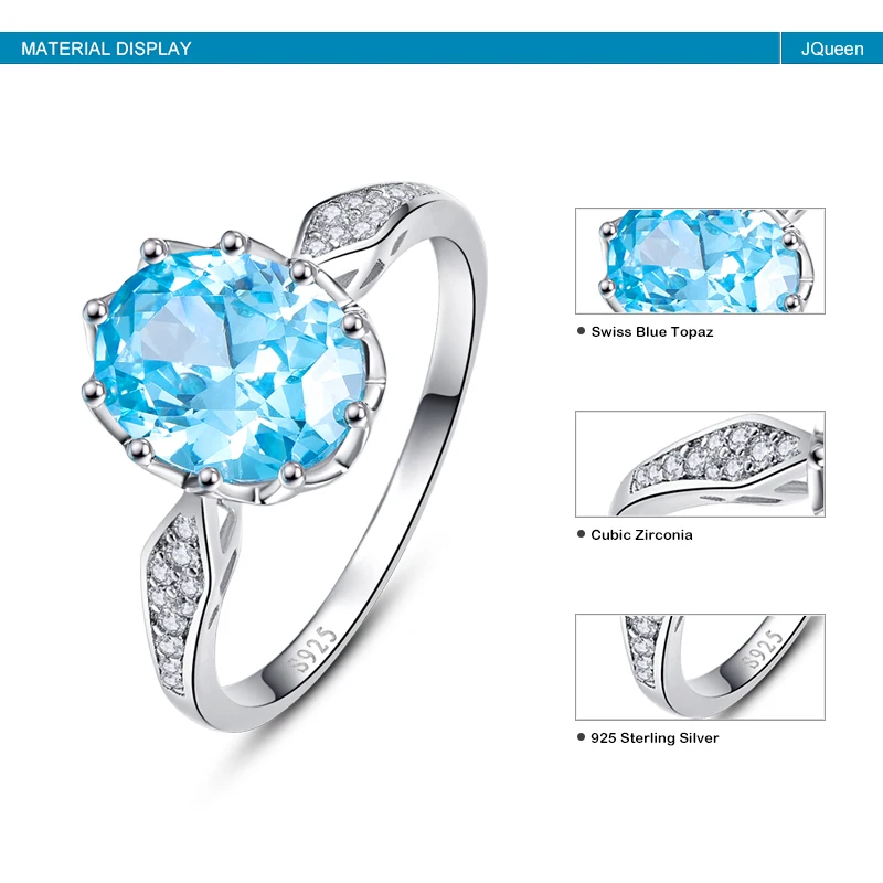 JQUEEN 4ct Blue Topaz Gem Stone Rings 925 Sterling Silver Oval Cut bijoux anel female Ring for Women Fine Jewelry With Gift box