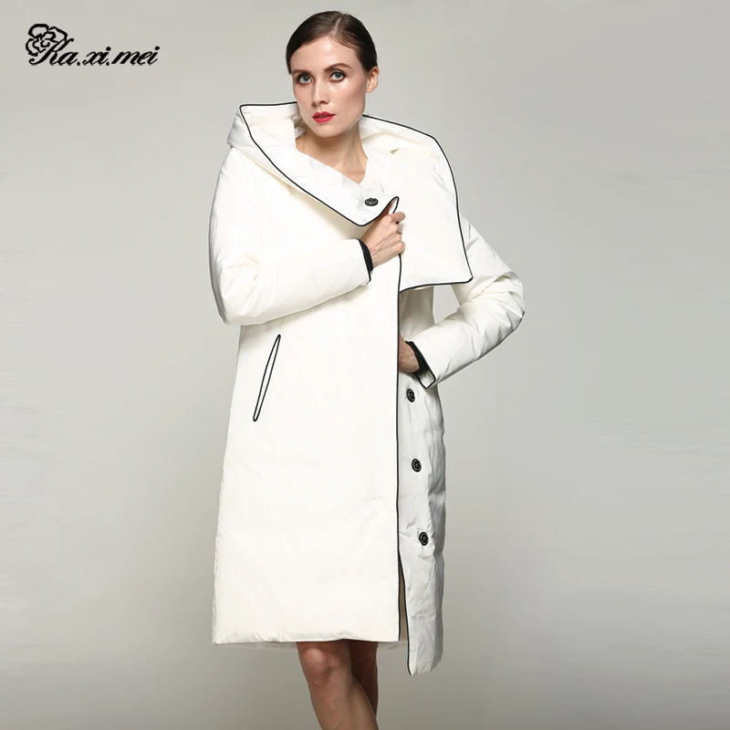 Kaximei White Duck Down Full Down Jacket Women 2017 New Arrival Irregular Pockets Wear Outwear Coat 80588