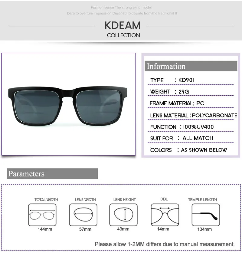 KDEAM 2016 Fashion Men Square Polarized Sunglasses Brand Designer Sport Sun Glasses Women Mirror UV400 With Peanut Box