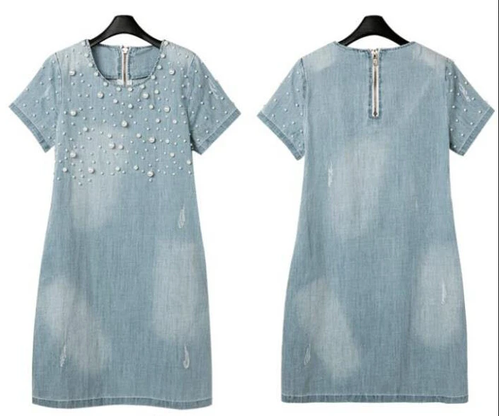 Large size 5XL Sundress Jeans Women's casual plus size vestidos embroidery beaded Denim Dresses big sizes Party Summer Dress
