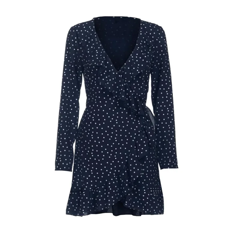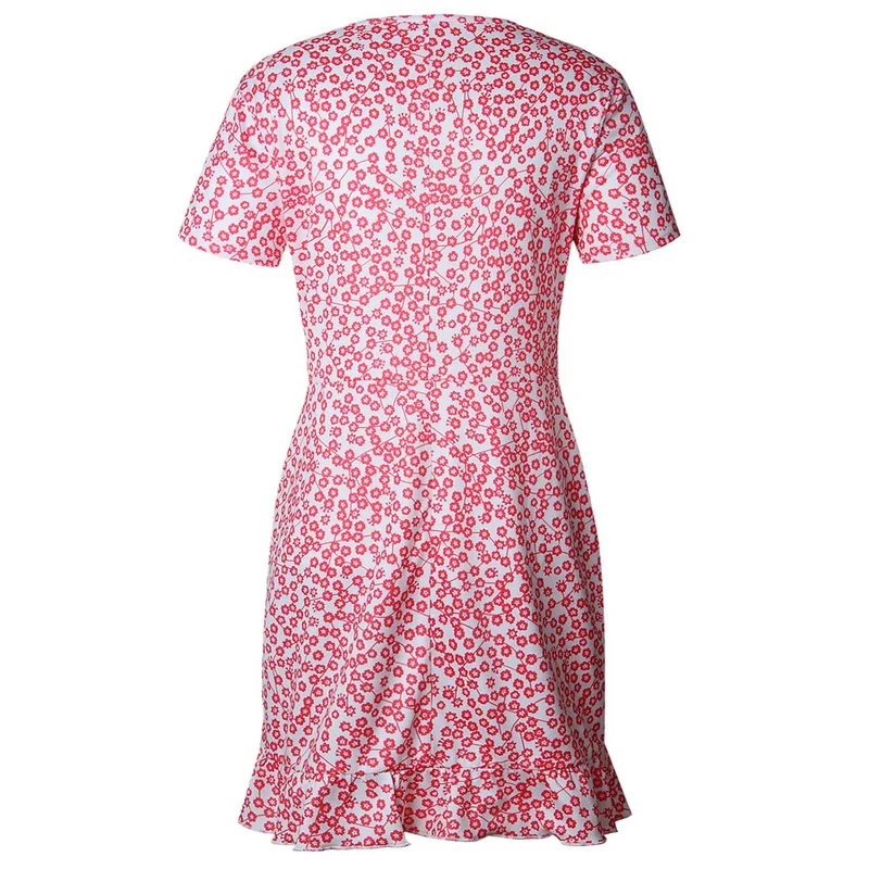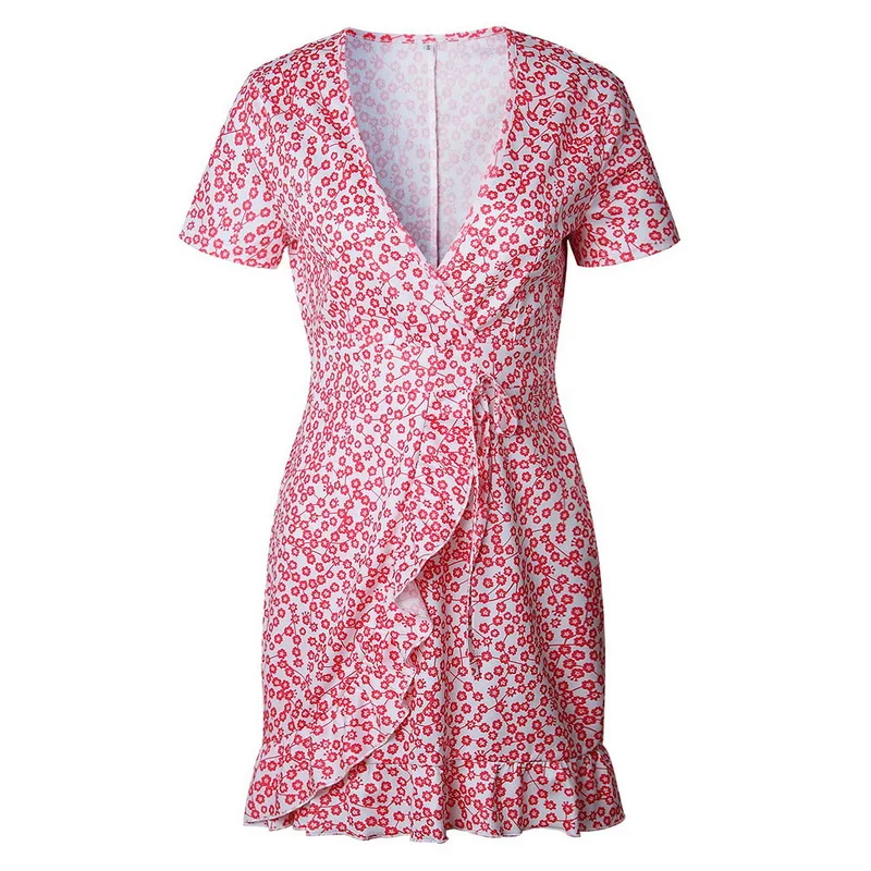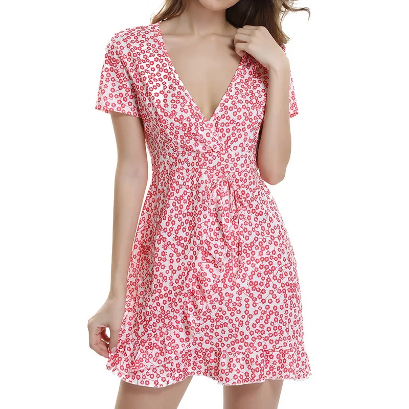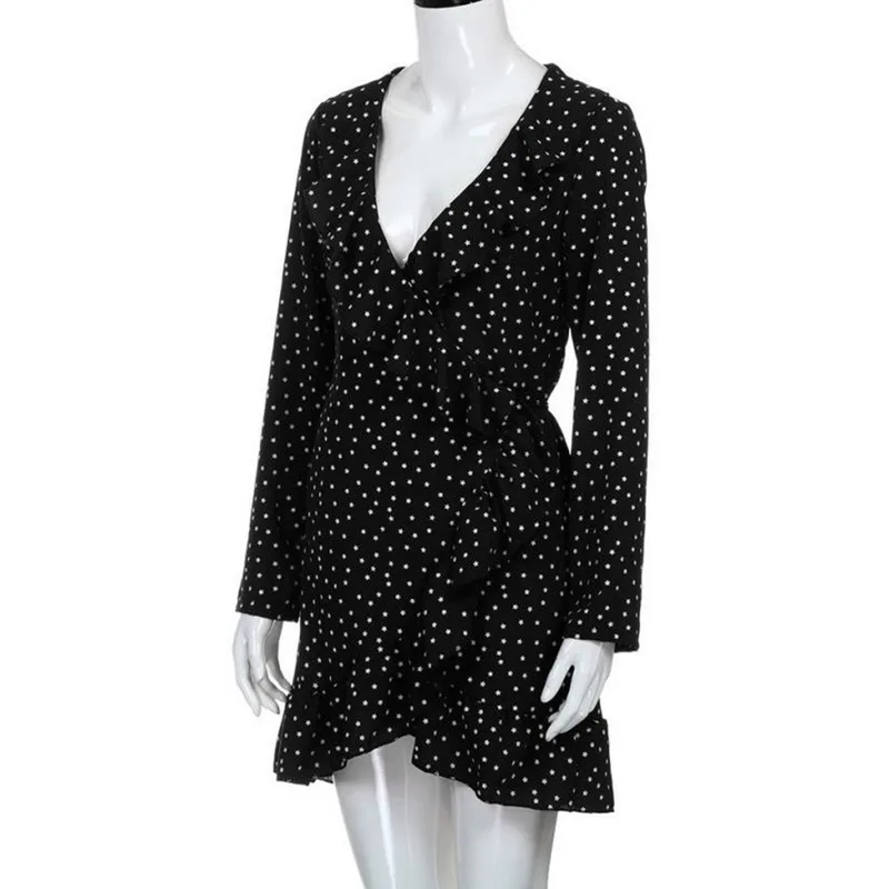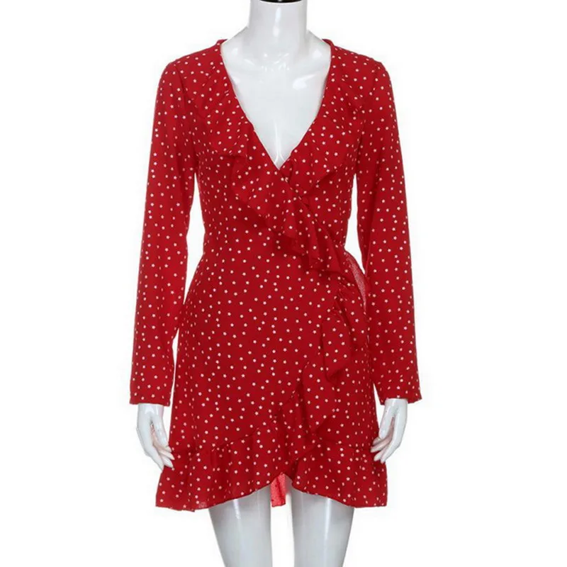 LASPERAL Polka Dot Print Summer Dress Beach Irregularities Sexy Dress Women Deep V Neck Short Sleeve Slim Chiffon Dress Vestidos