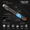 - Adjustable with 5 Modes - The flashlight has 5 adaptable settings: High Lumens, Medium, Low, Flash/Disruptor, SOS/Emergency. Light for long-range observation and floodlight for large area illumination (just rotate torch head to adjust zoom). Lotus top can protect the lens, rhombus skid-proof and waterproof.