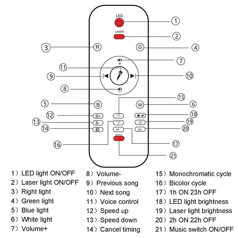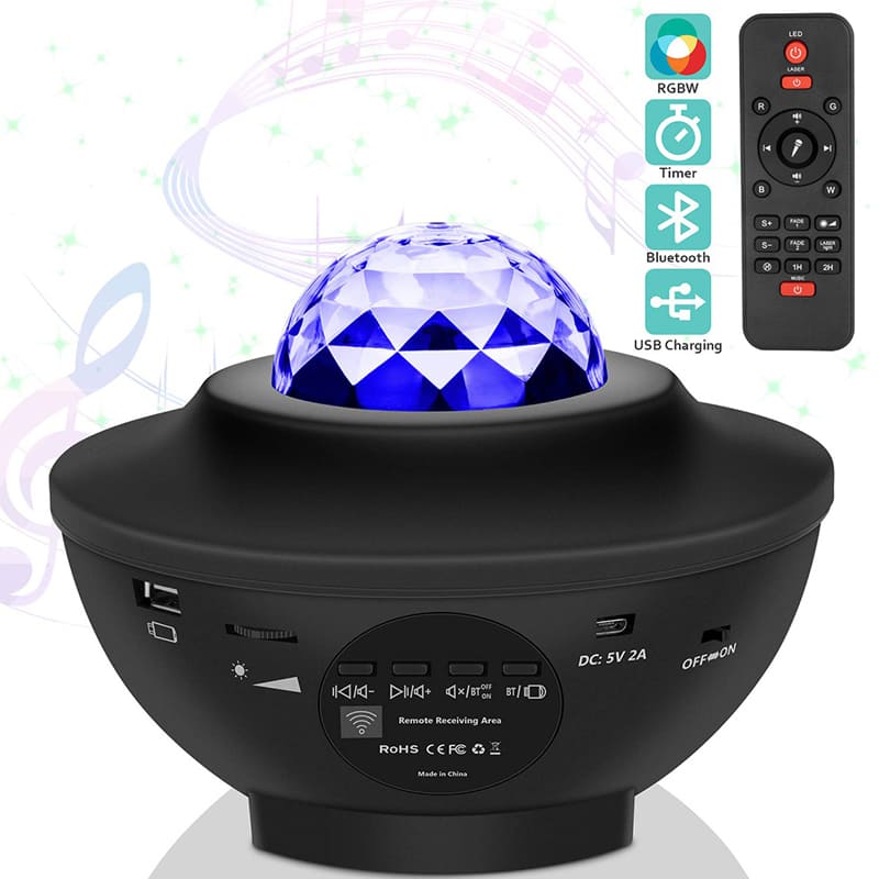 Functions: LED Projector light, Music Speaker, Bluetooth, Remote control