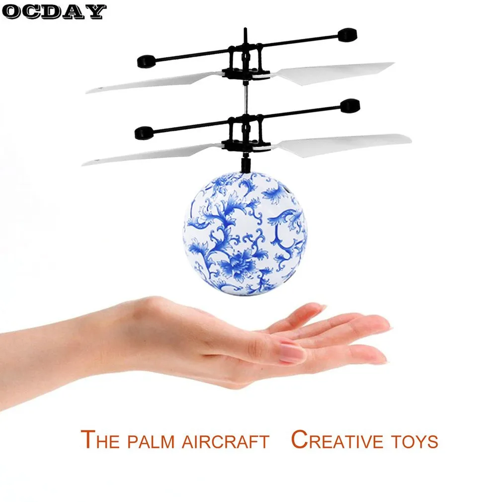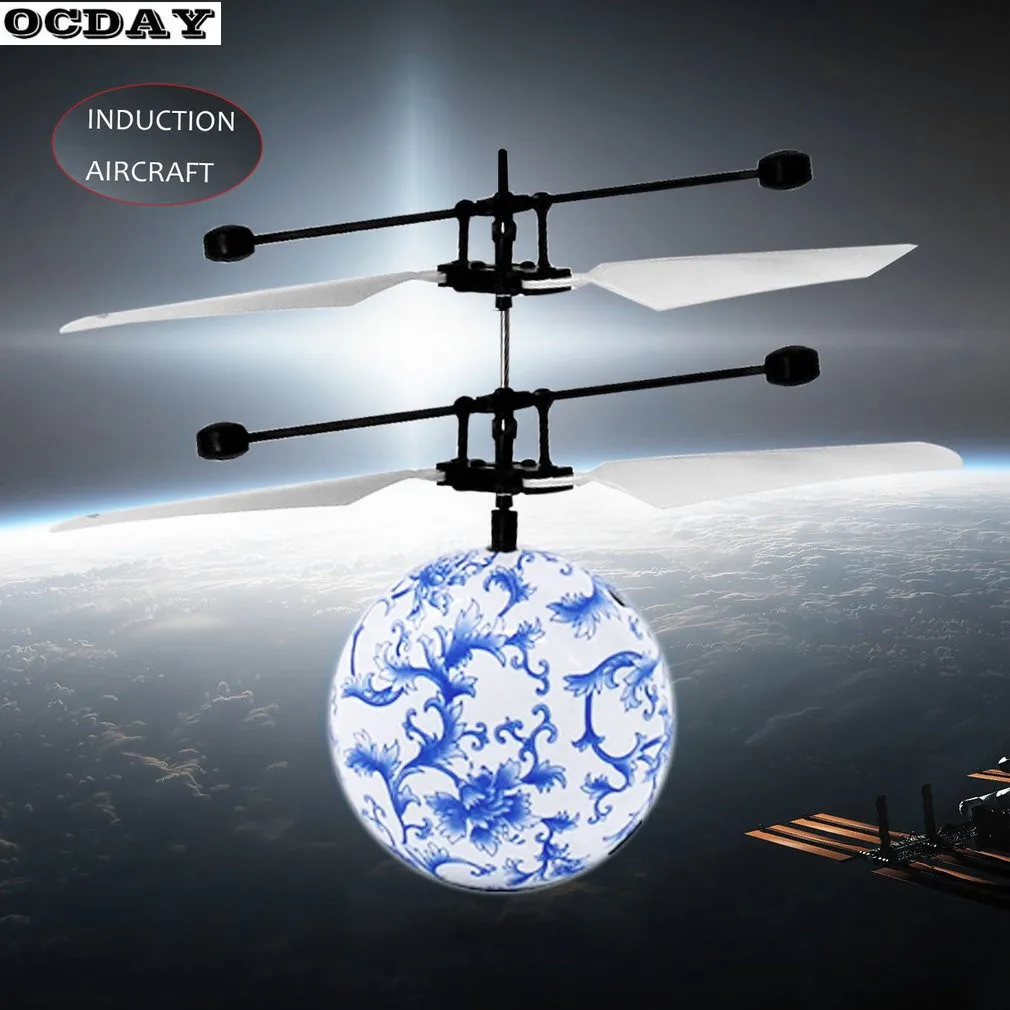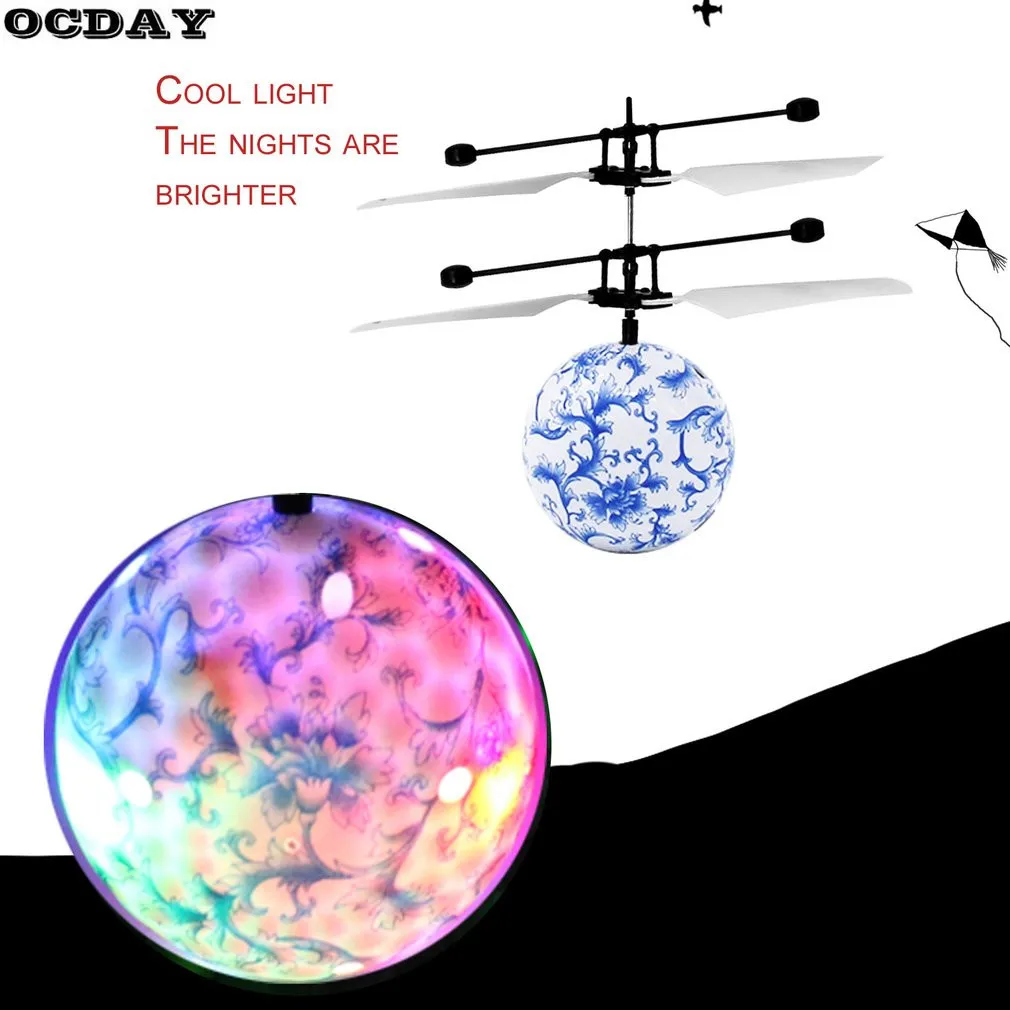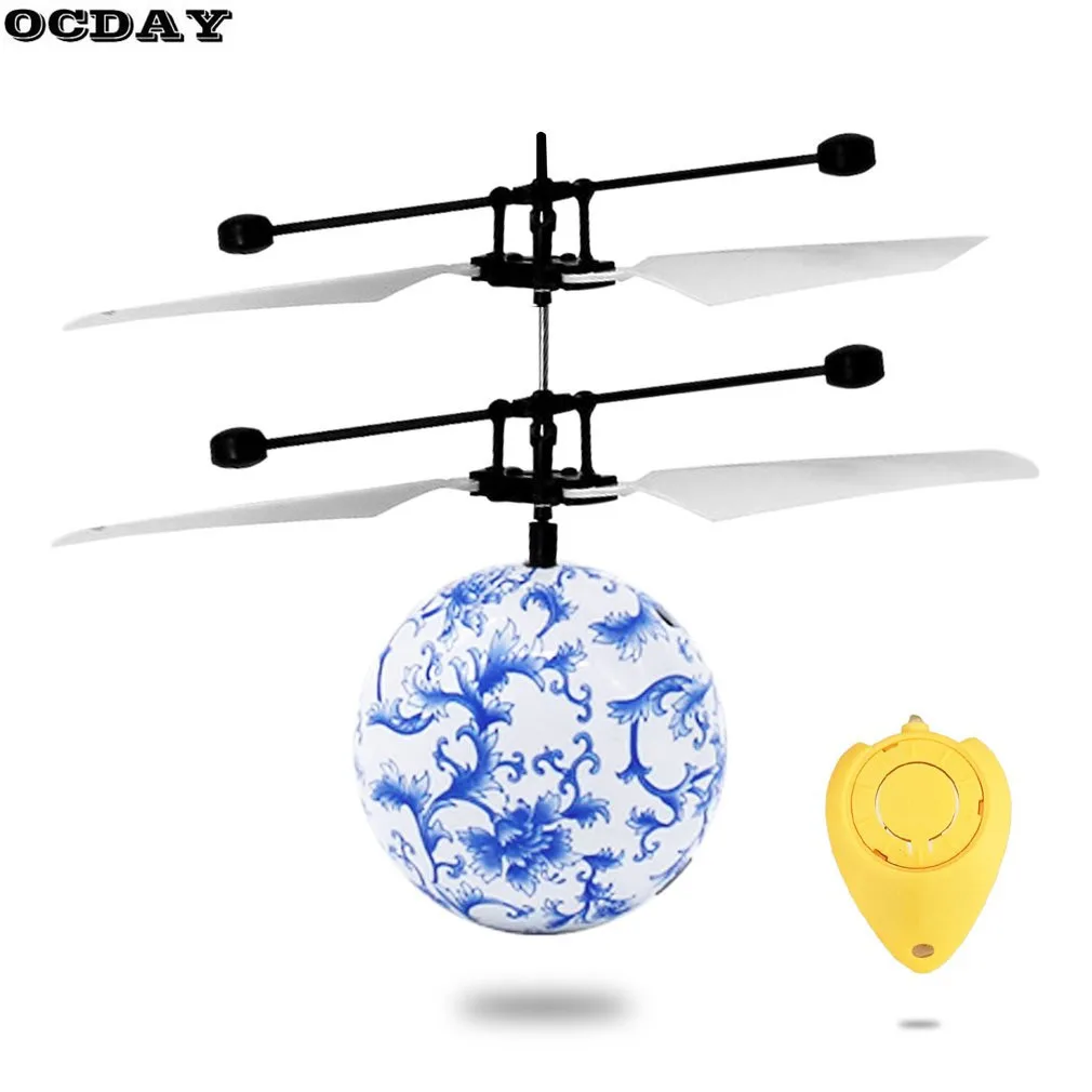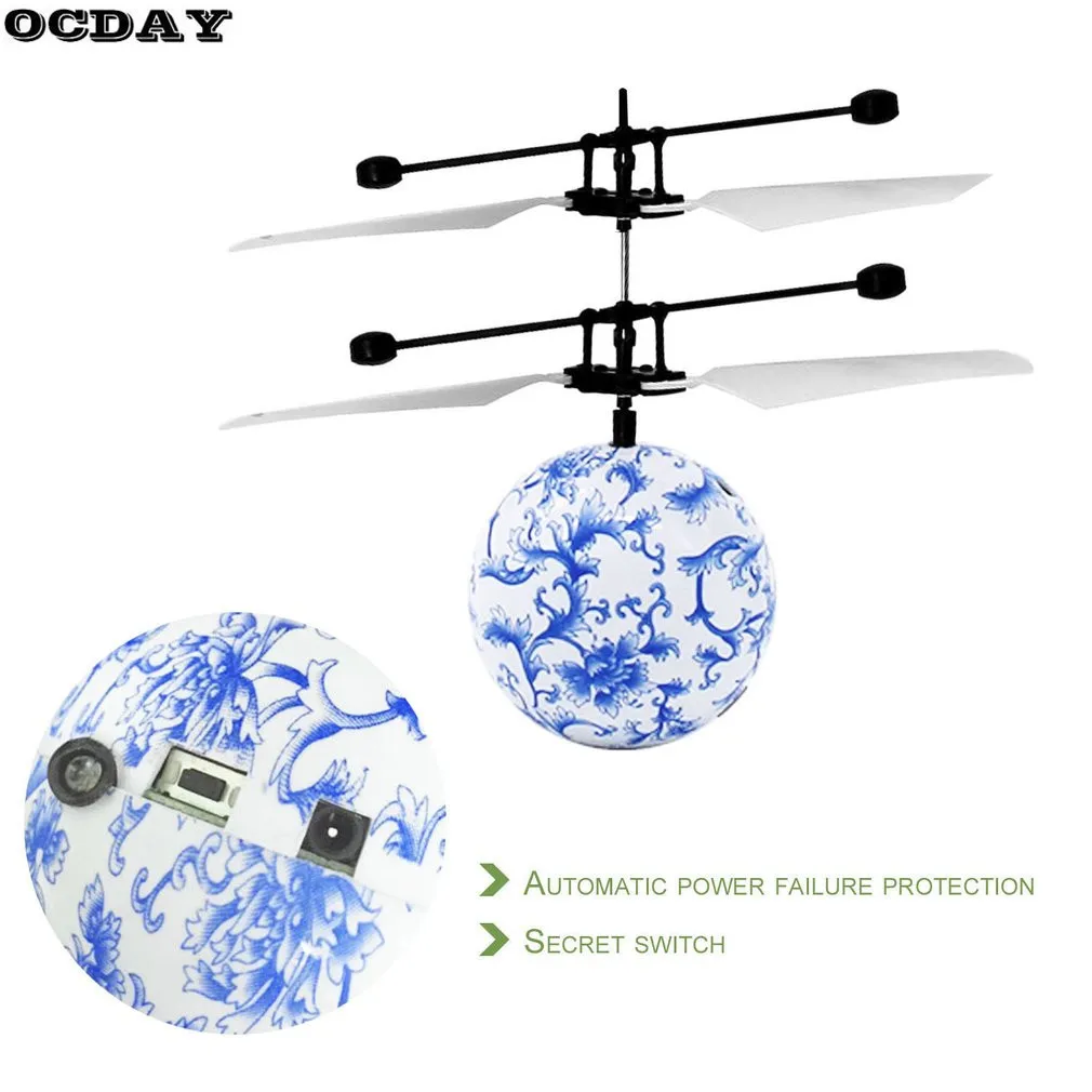 LED Remote Football Flying RC Drone Helicopter Infrared Induction Mini Aircraft With Porcelain Ball 2 Colors Lighting Kids Toys
