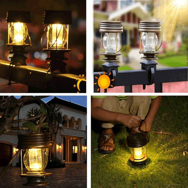 LED Retro Solar Powered Lamp Vintage Solar Light Hanging Lantern Garden Landscape