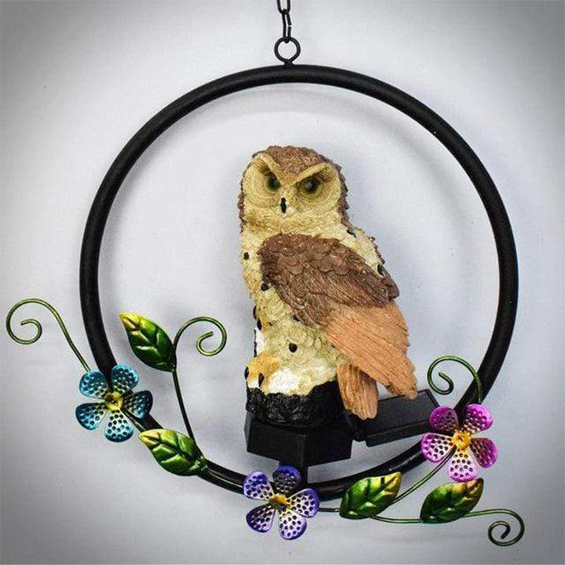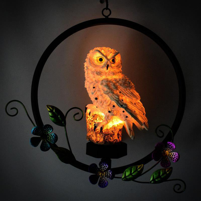 LED Solar Owl Shape Night Light Hanging Lamp for Courtyard Decoration