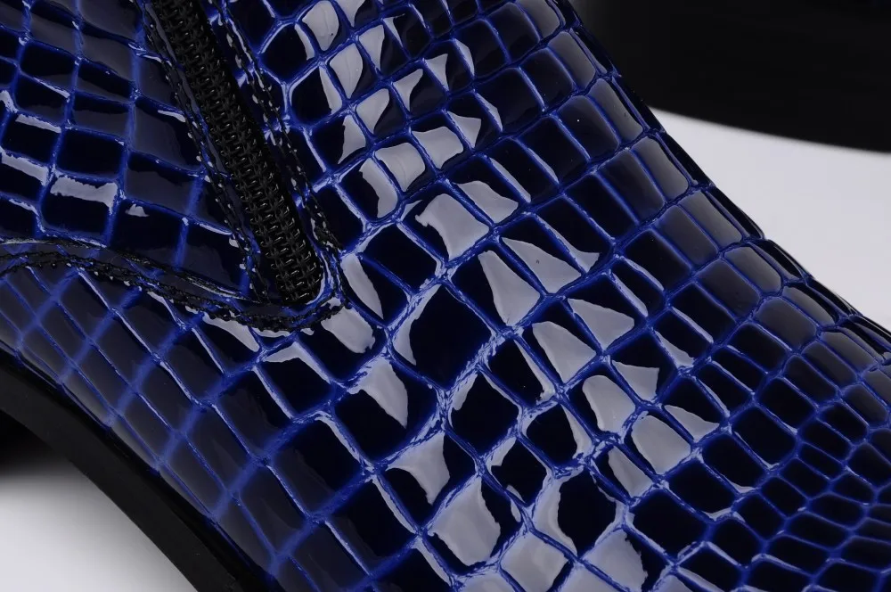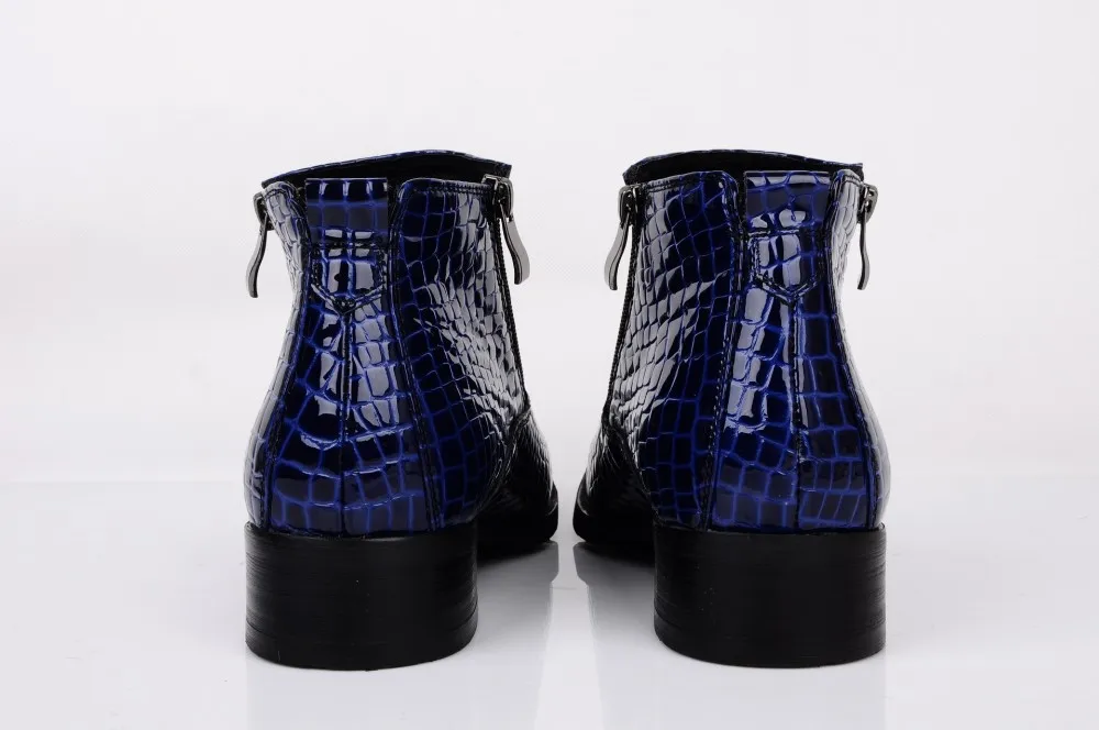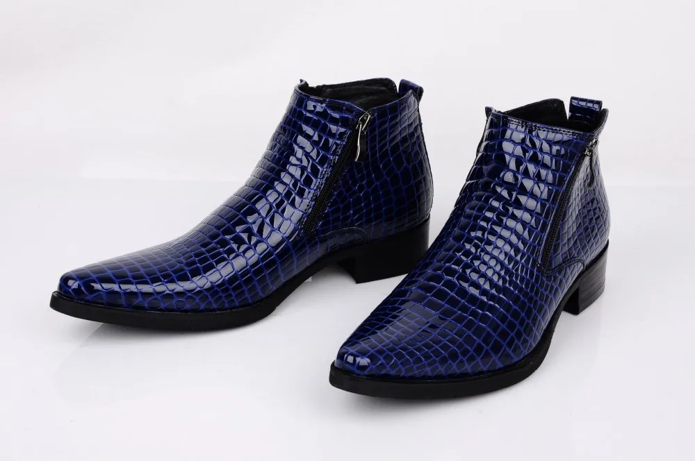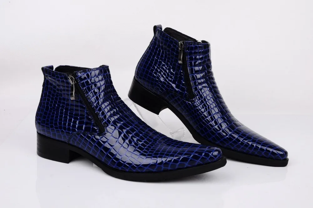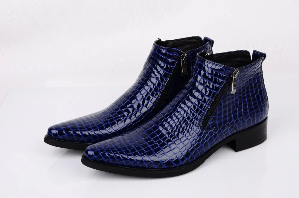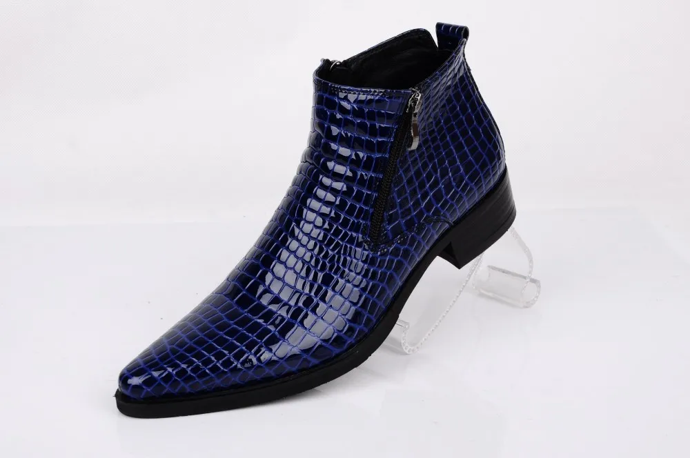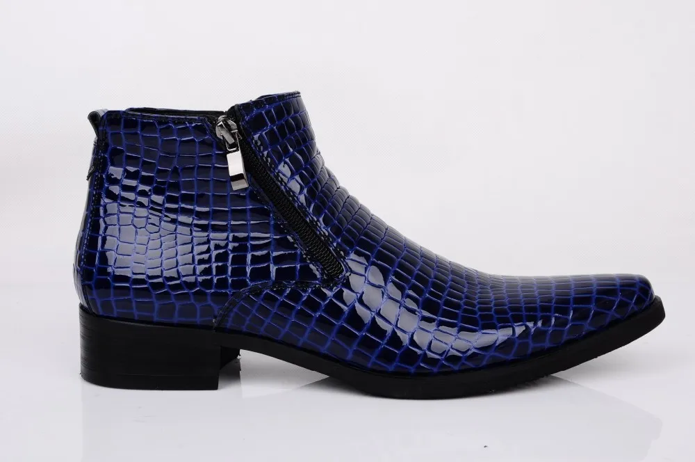 LOISWORD Large size EUR46 serpentine blue / black pointed to dress shoes mens ankle boots genuine leather wedding shoes