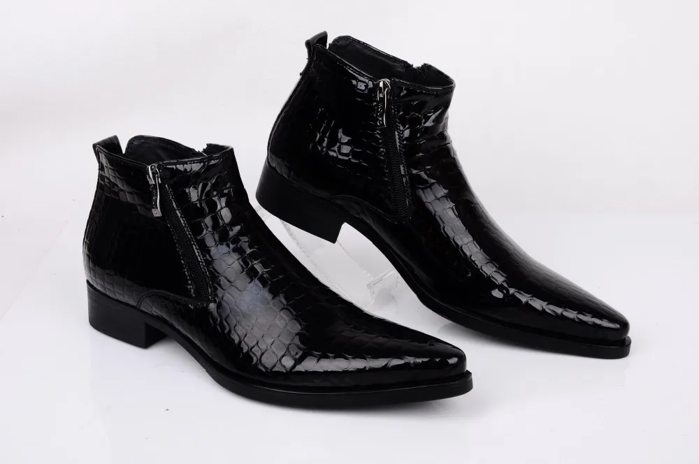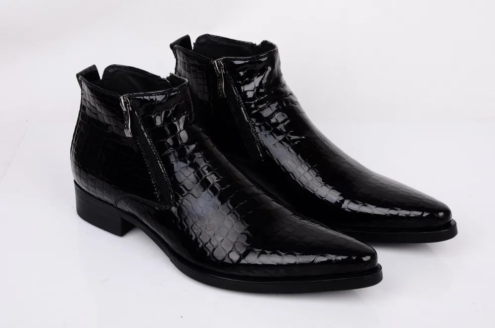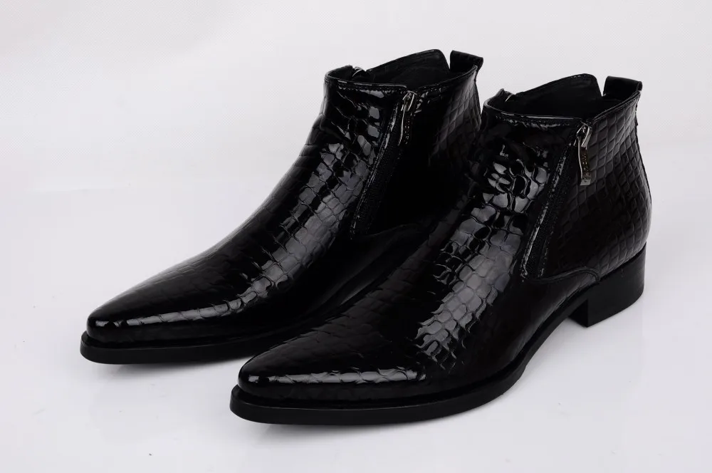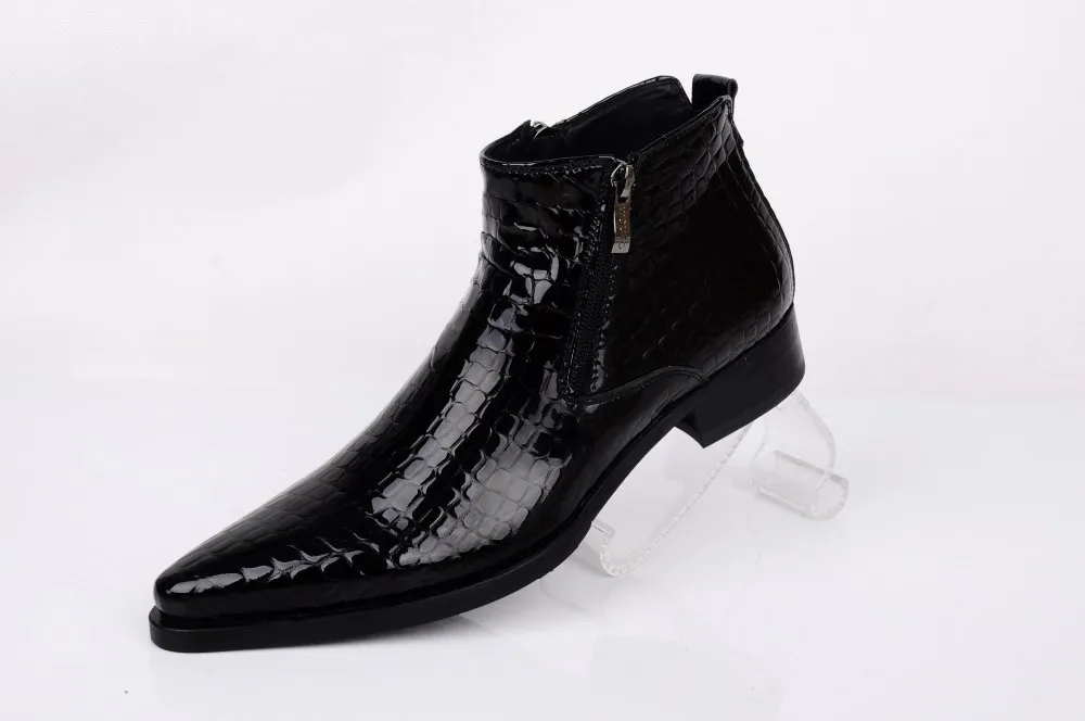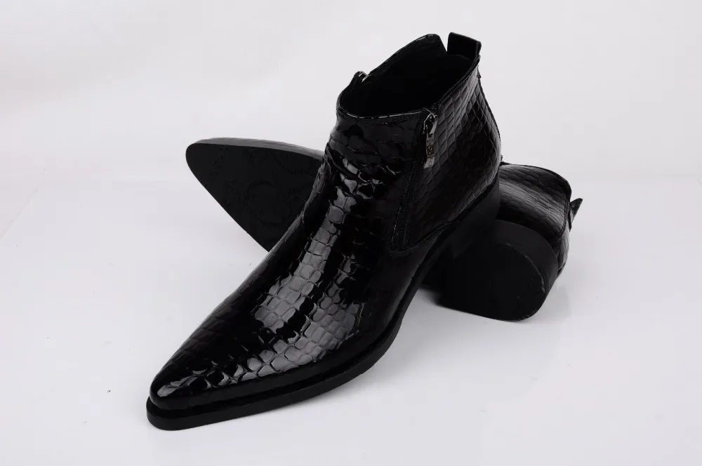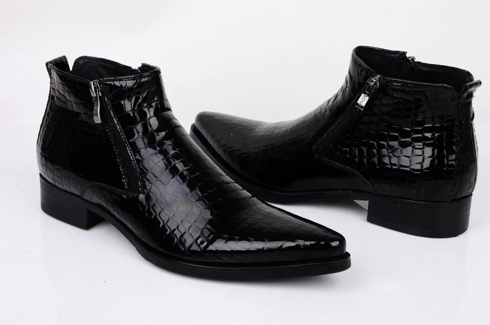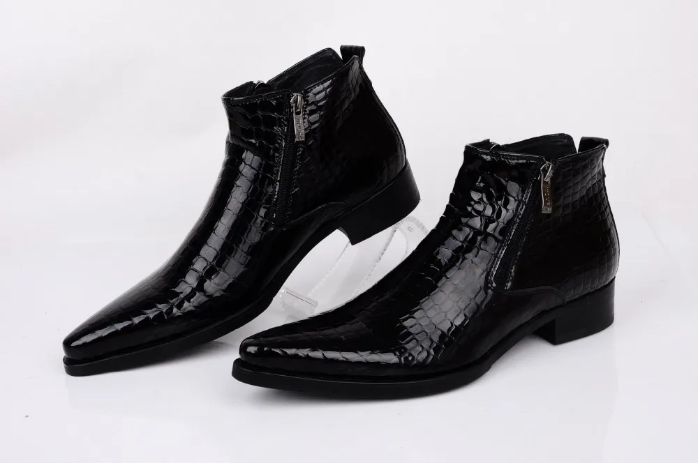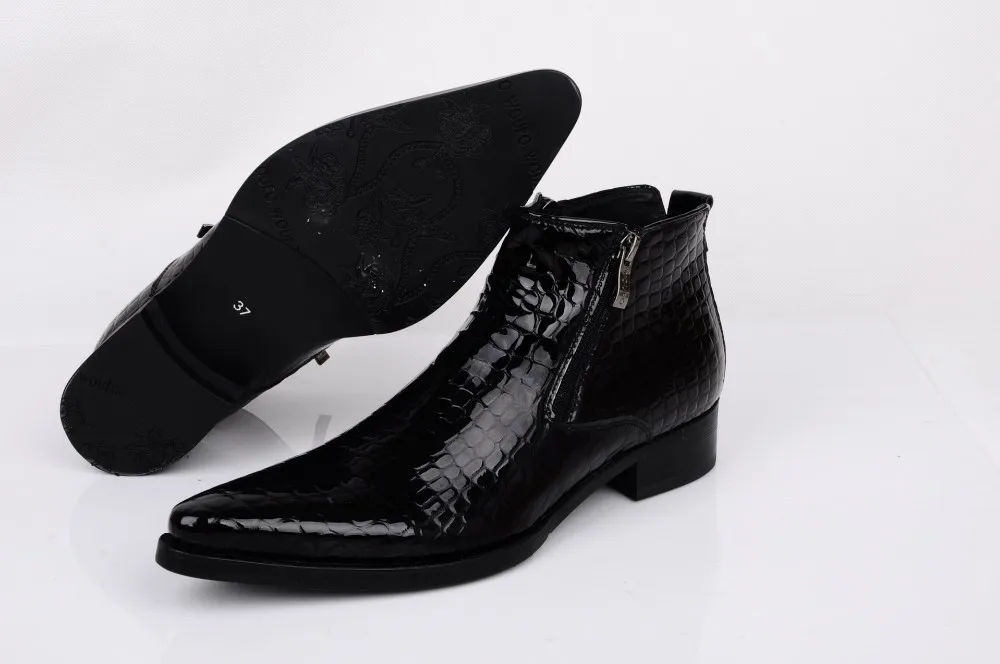 LOISWORD Large size EUR46 serpentine blue / black pointed to dress shoes mens ankle boots genuine leather wedding shoes