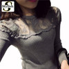 Long Sleeve Blouses Shirts Female Knitted Lace Blouse Women Blouses 2016 Autumn Winter New Fashion Sexy Perspective Tops Blusas
