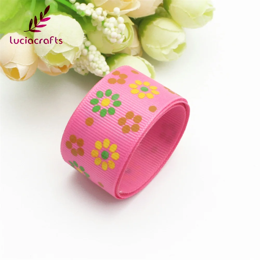 Lucia crafts 5y/8y 25mm Polyester Grosgrain Printed Ribbons DIY Hair Bow Garment Handmade Sewing Trim Ribbon Materials 040054264
