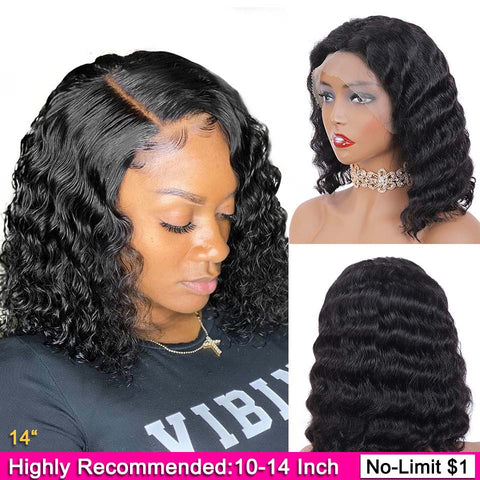 lumiere Short Bob Lace Front Wigs Deep wave T-Part Lace Human Hair Wigs Pre-Plucked