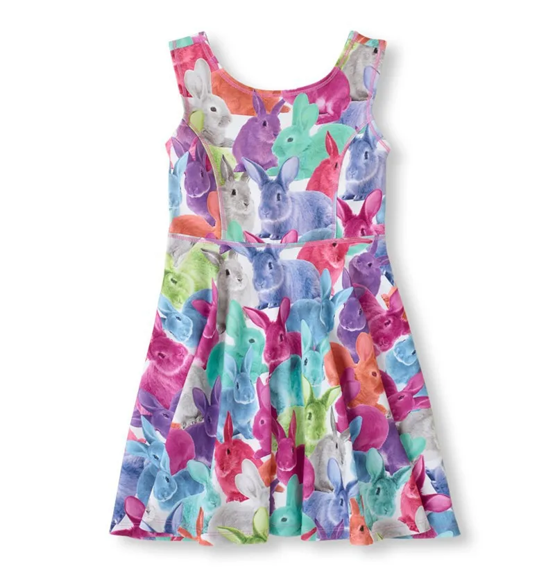 2017 New Girls Casual Cotton Beach Dress Fashion Cartoon Cats/Dogs/Rabbits Print Dress Kids Girls Party Dress Children's Clothes
