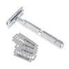 Male Double Edge Safety Razor Stainless Steel Shaving Razor Traditional Razor With 5pcs Blades Men's Shaving Tool