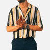 Mens Stripe Turn-down Collar Shirt Buttons Short Sleeve T-Shirt