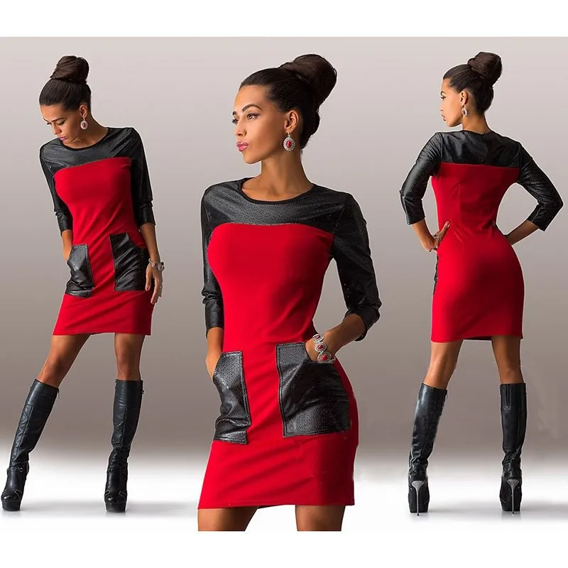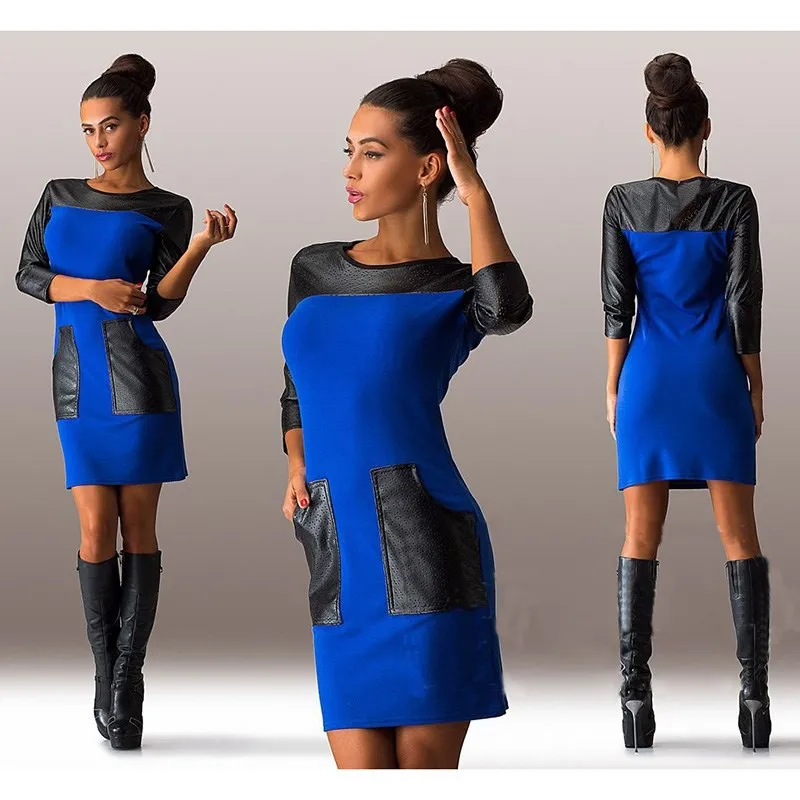 Gender: Women;Silhouette: Straight;Brand Name: MOARCHO;Sleeve Length(cm): Three Quarter;Style: Casual;Model Number: NT4-149;Material: Polyester;Sleeve Style: Regular;Pattern Type: Solid;Dresses Length: Above Knee, Mini;Decoration: Pockets;Season: Autumn;Neckline: O-Neck;Waistline: Natural;Fabric Type: Broadcloth;Style: Casual;