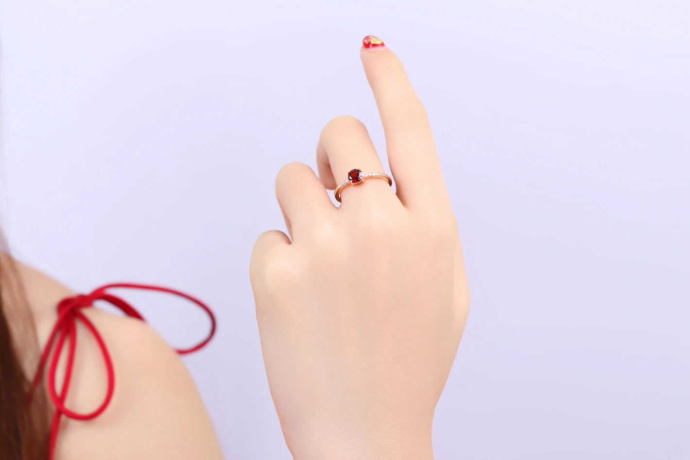 MoBuy MBRI012 Round Red Garnet Adjustable Ring 925 Sterling Silver Rose Gold Plated Natural Gemstone Fine Jewelry For Women