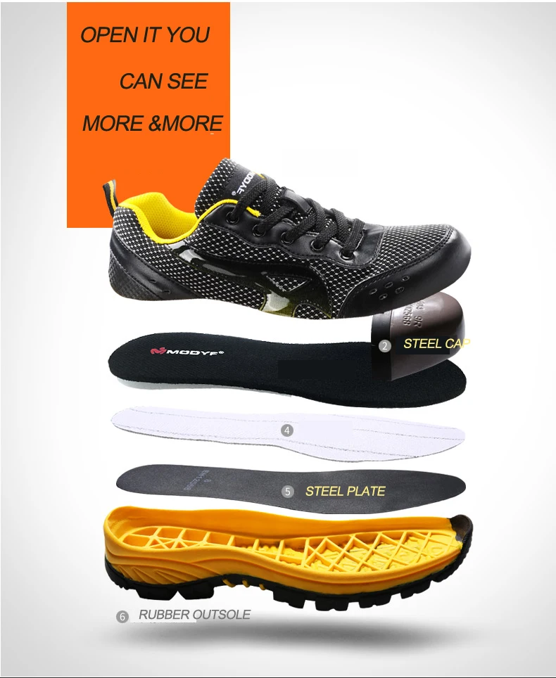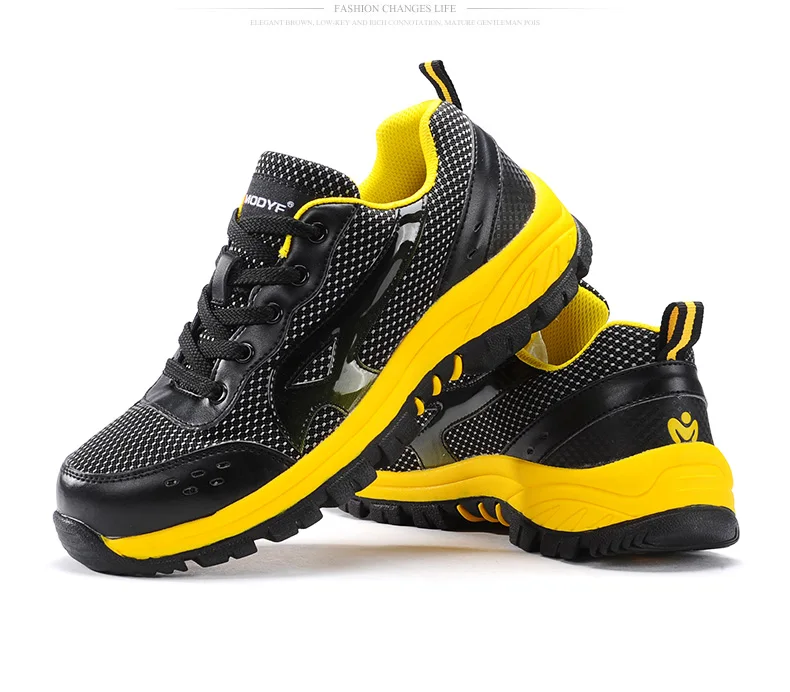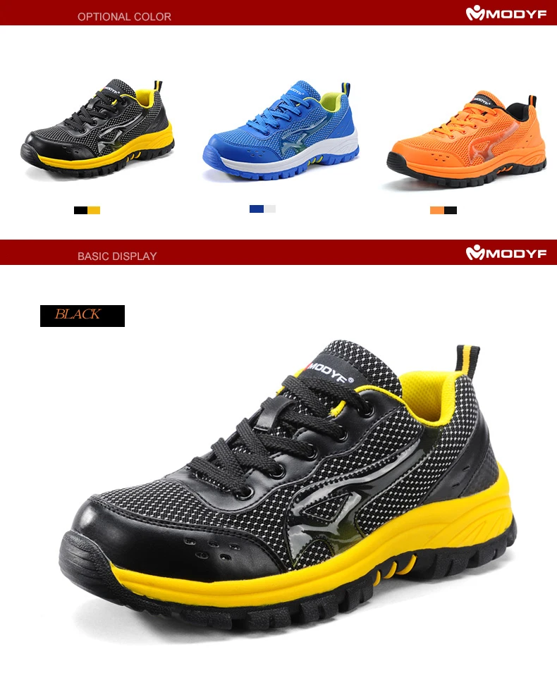 Modyf Men color steel toe cap work safety shoes mesh casual breathable outdoor boots puncture proof footwear(one size smaller)