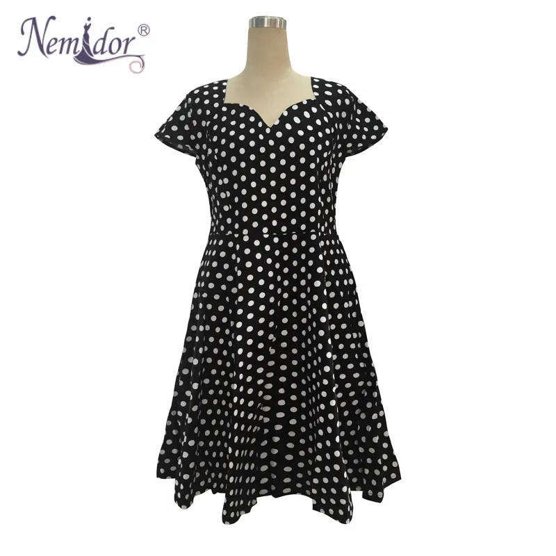 Nemidor Casual Dot Short Sleeve Elegant Party Patchwork A-line Summer Dress V-neck Plus Size 7XL 8XL 1950S Retro Swing Dress