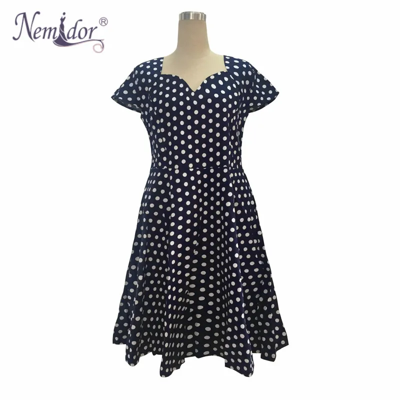 Nemidor Casual Dot Short Sleeve Elegant Party Patchwork A-line Summer Dress V-neck Plus Size 7XL 8XL 1950S Retro Swing Dress