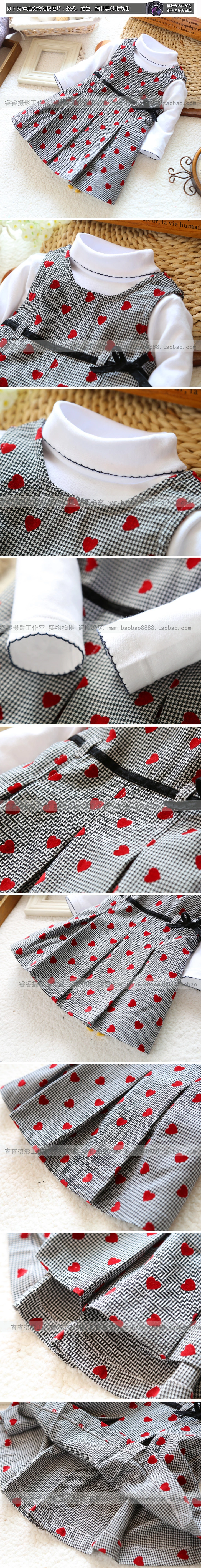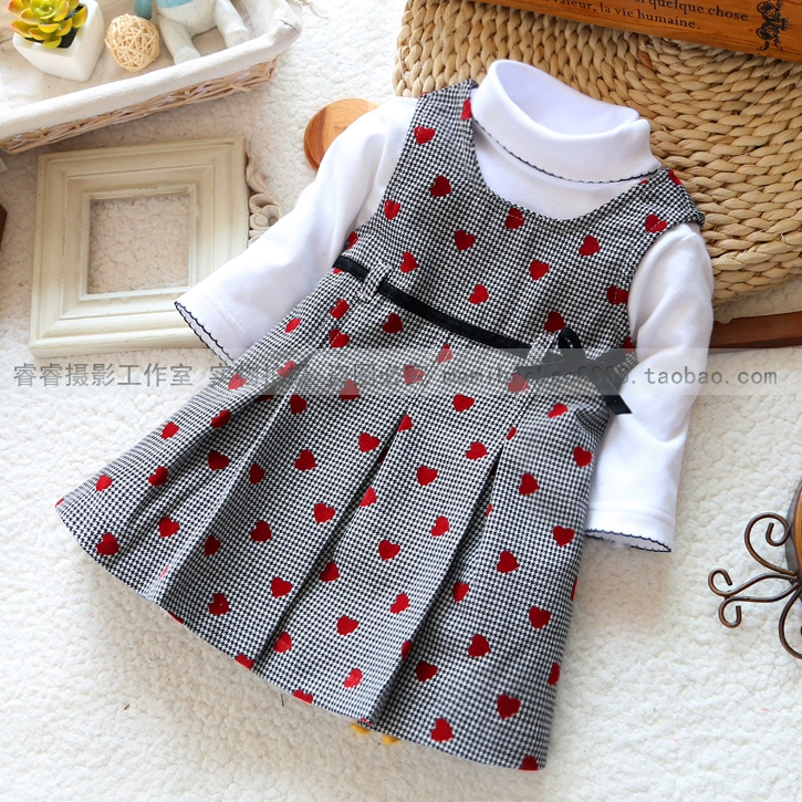 new 2015 spring autumn baby girl dress children clothing sets kids t-shirt + plaid dress girl's fashion all-match princess dress