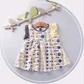 new2016 summer Bird prints sleeveless dress bows baby girls cotton 100 clothes dressing party for infants sweet children newborn