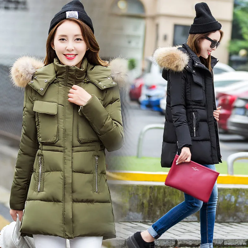 New 2016 Winter Fashion Women's Down Jacket Cotton-padded Clothes Warm Coat adjustable waist belt Slim Big yards Z020
