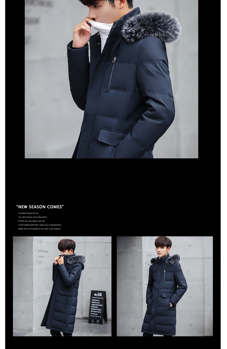 New 2017 Winter down jacket Men Warm Coat Fashion white duck down jackets Long Slim Coat Men Natural fur collar Thicken Parkas