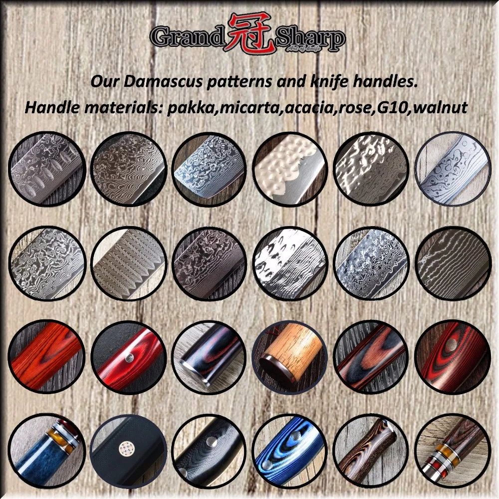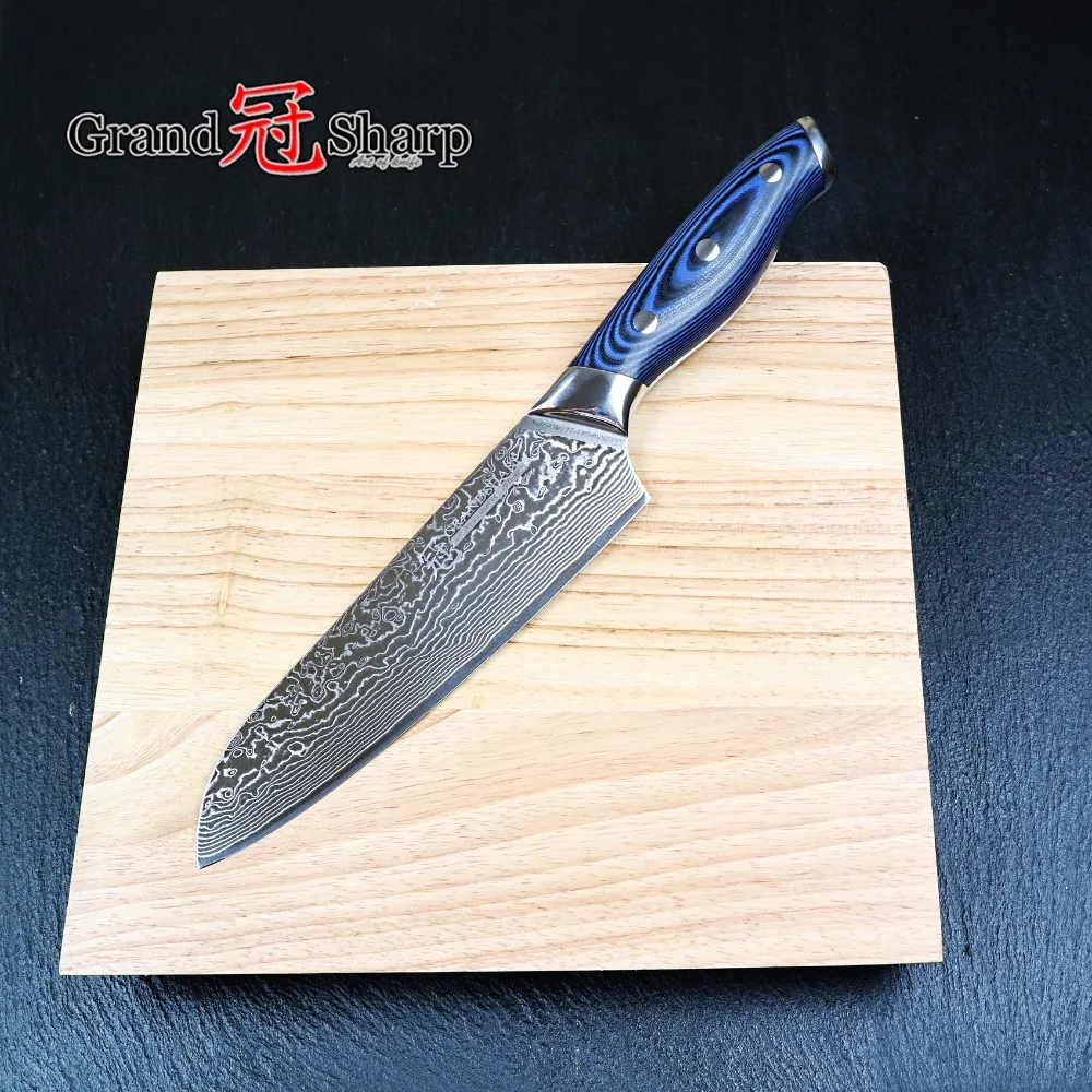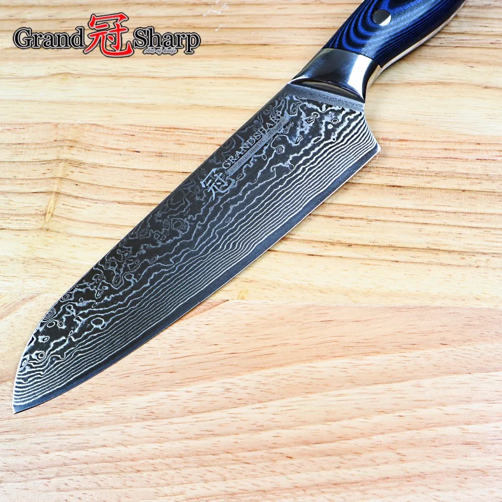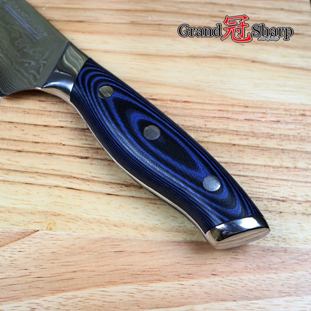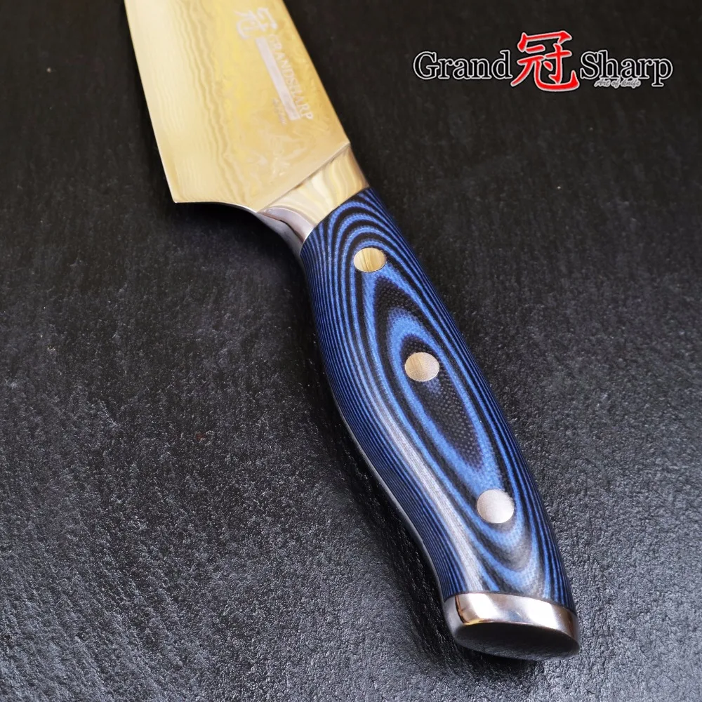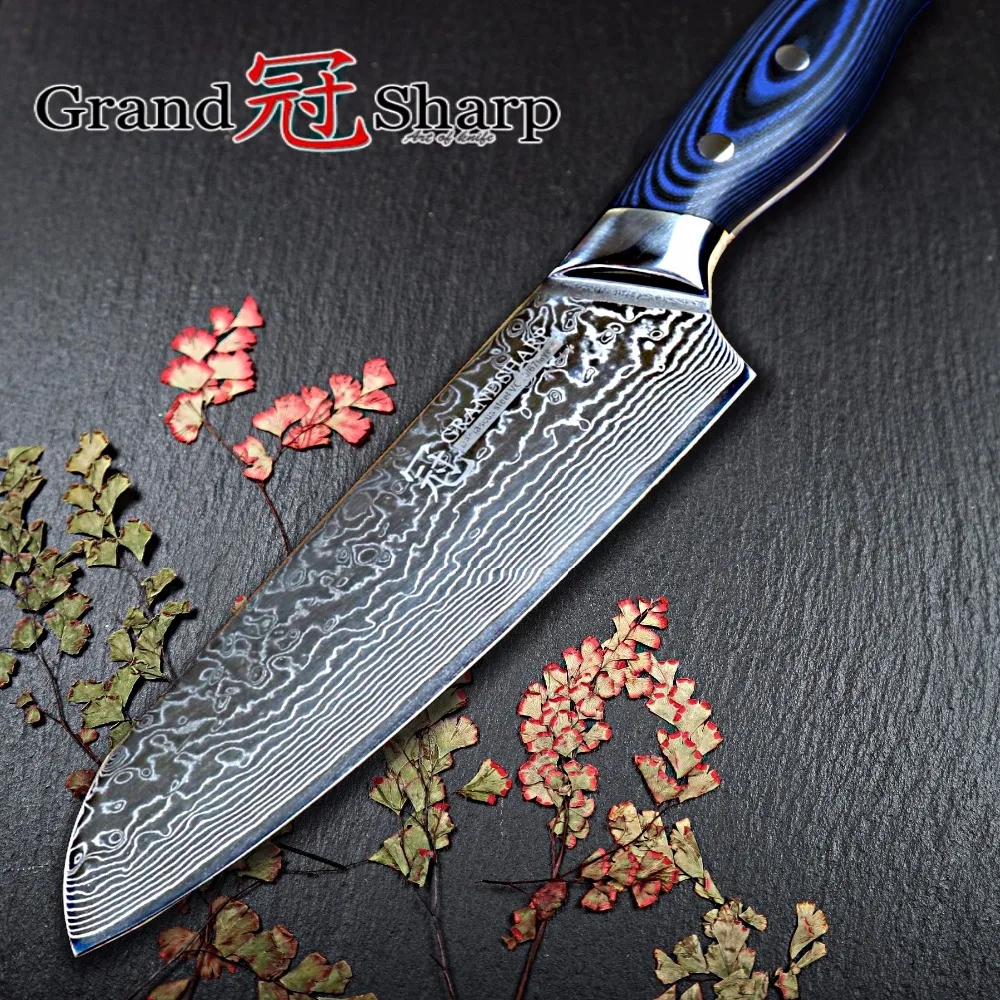 Type: Knives;Feature: Eco-Friendly,Stocked;Certification: FDA,CE / EU;Brand Name: grandsharp;Knife Type: Santoku Knives;Model Number: DMS006B1;Material: Damascus Steel;Color: blue;Blade: Damascus steel;Handle: G10;
