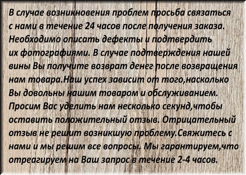 5) If you have not received your shipment within 60 days after payment, please contact us. We will track the parcel and get back to you within 24 hours.