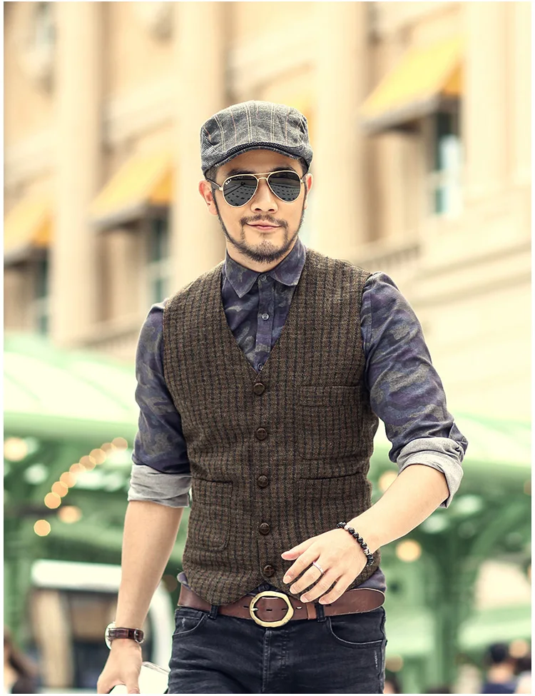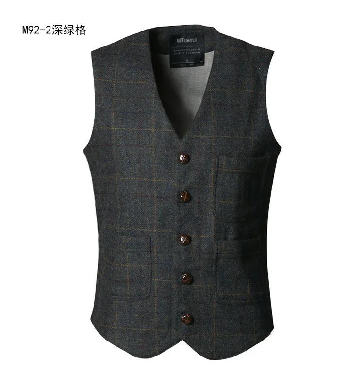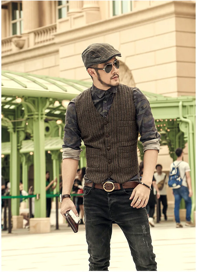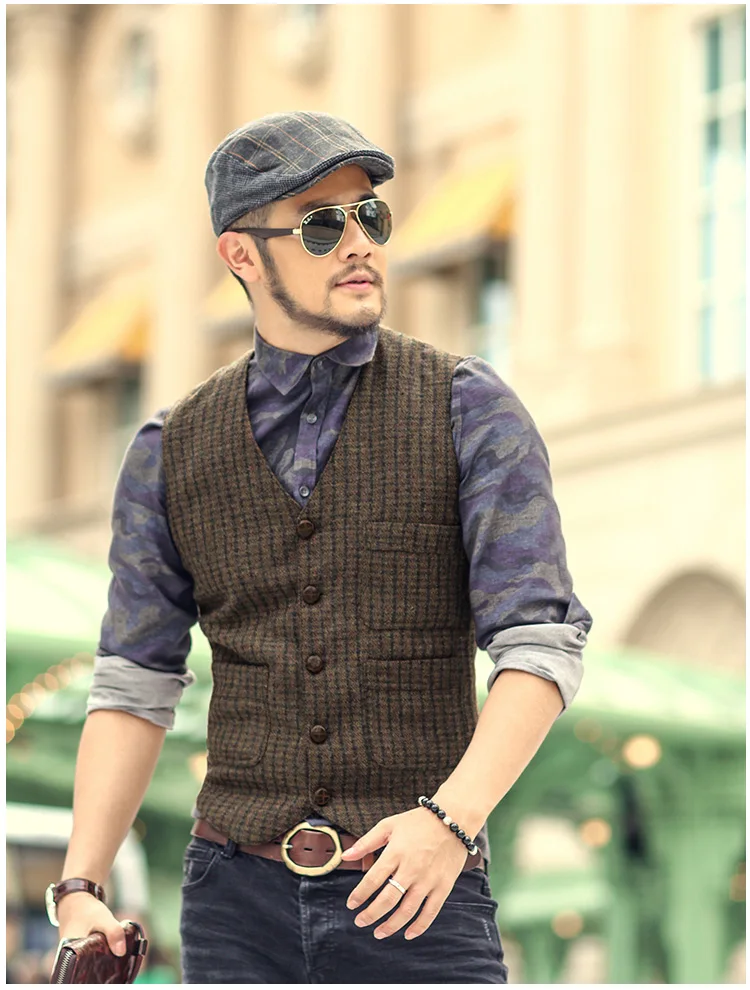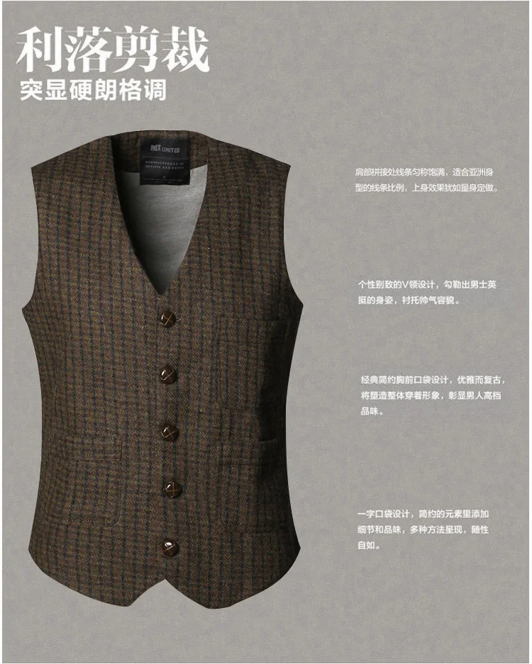 New England Vintage Mens woolen tweed casual suit vest Slim fit Vest Wedding Waistcoat