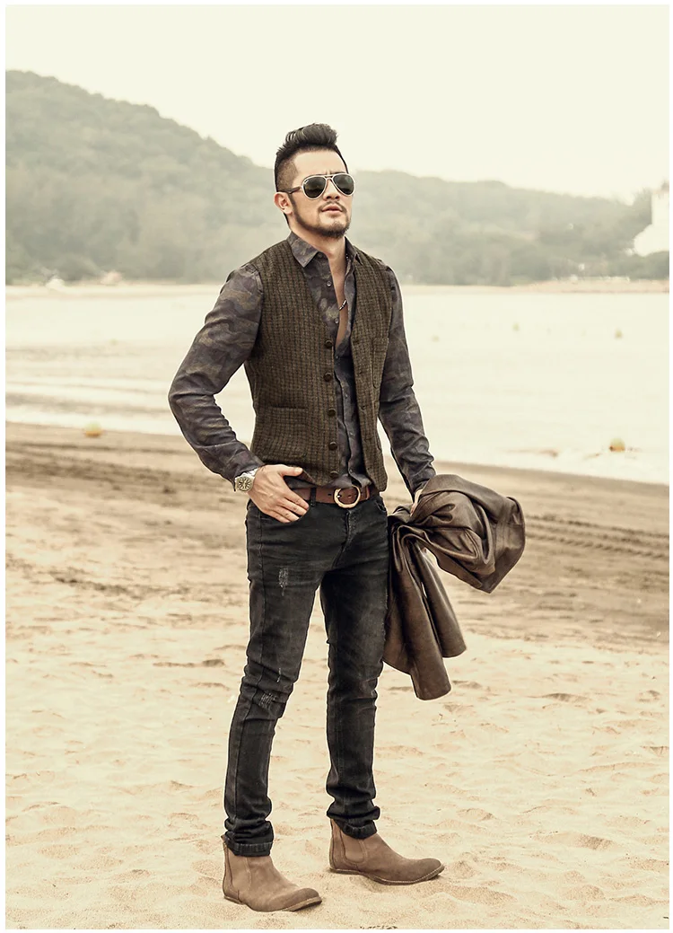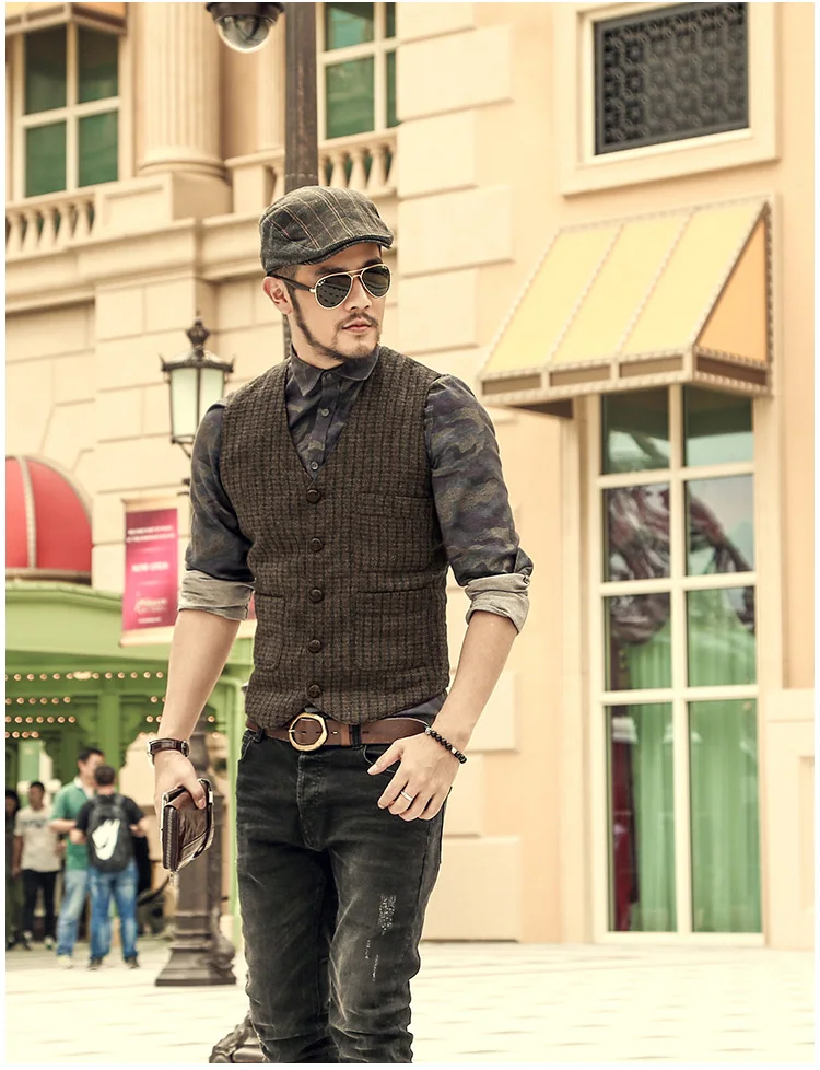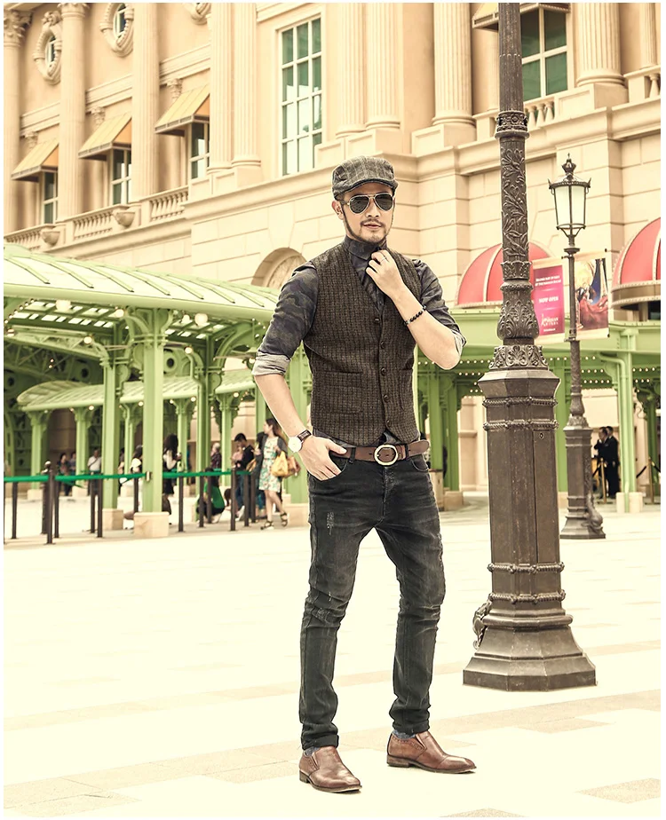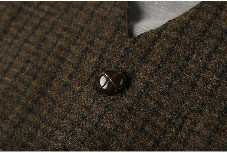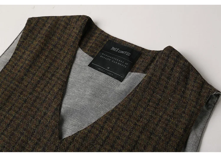 New England Vintage Mens woolen tweed casual suit vest Slim fit Vest Wedding Waistcoat