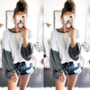 New Grey Patchwork Round Neck Long Sleeve Fashion T-Shirt