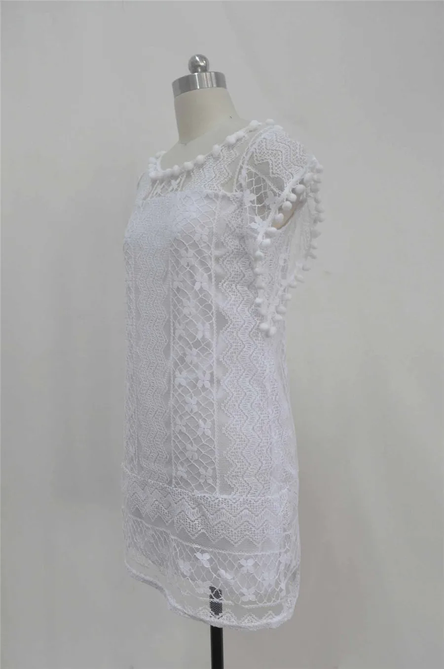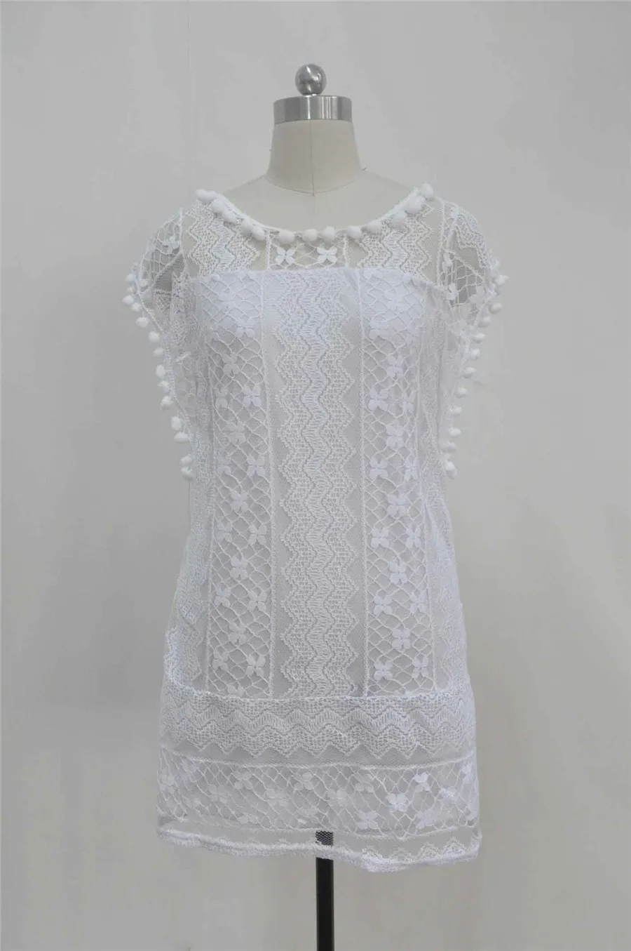 New Plus Size Women 2016 Summer Sexy White Lace Dress O neck Sleeveless Hollow Out Short Mini Casual A-line Beach Dress Vestidos