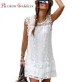 New Plus Size Women 2016 Summer Sexy White Lace Dress O neck Sleeveless Hollow Out Short Mini Casual A-line Beach Dress VestidosUSD 9.98/piecePlus Siz…
