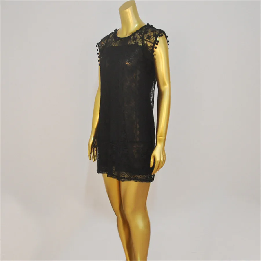 New Fashion Plus Size Women 2016 Summer Black White Lace Dress O neck Sleeveless Lace Hollow Out Slim Straight Casual Short Mini A-line Dress Vestidos