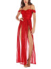 New Red Patchwork Grenadine Double Slit Spaghetti Strap Zipper Fashion Maxi Dress