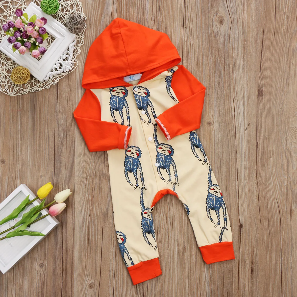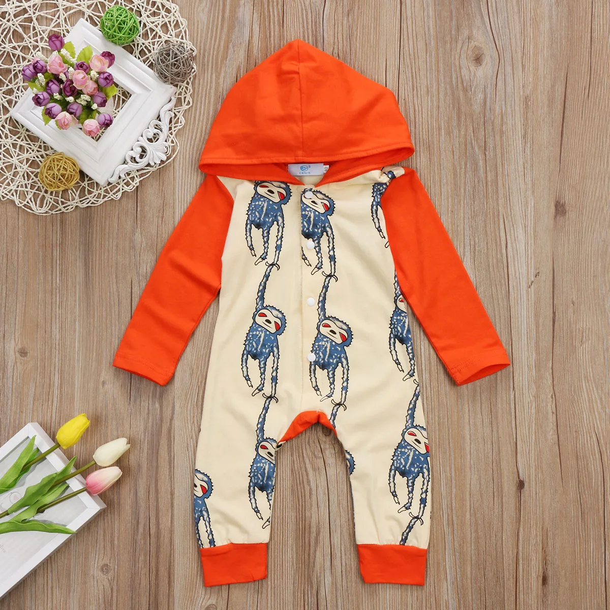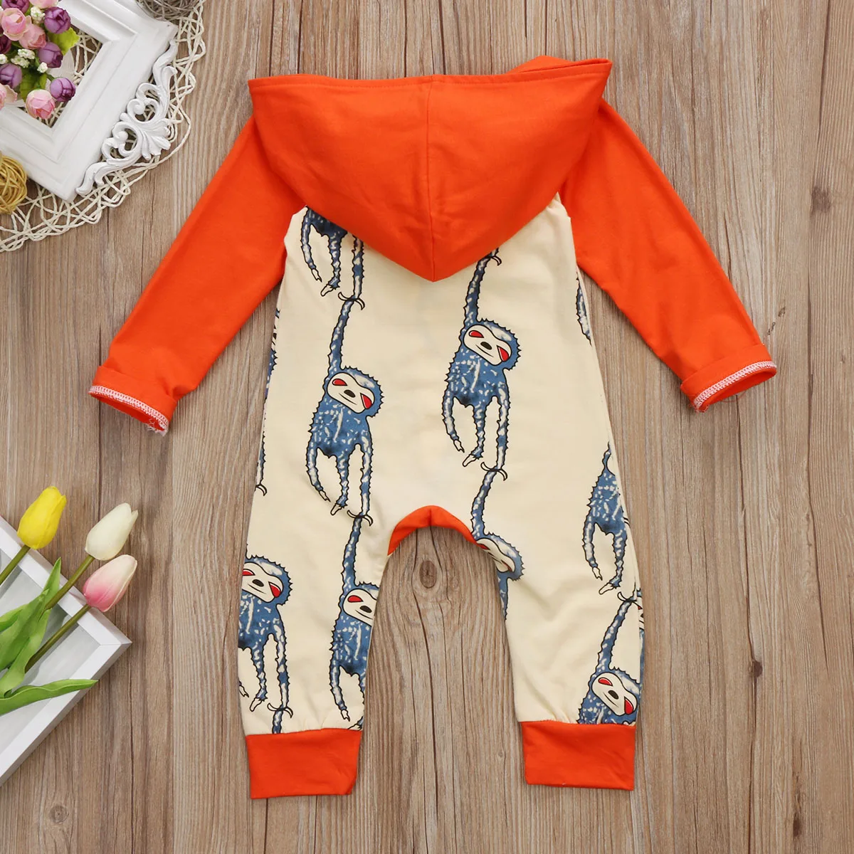 Newborn Baby Boy Girl Hooded Romper Long Sleeve monkey Jumpsuit Clothes Outfit