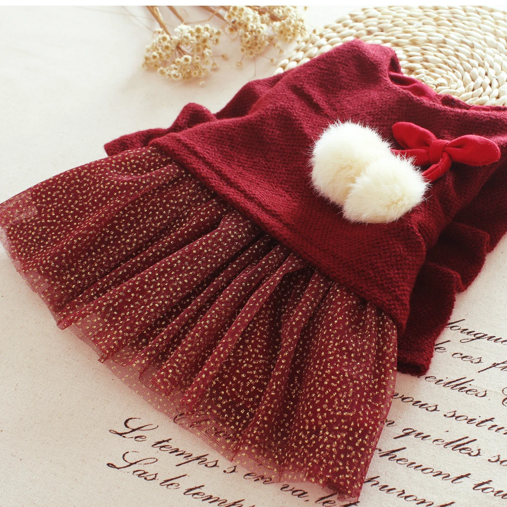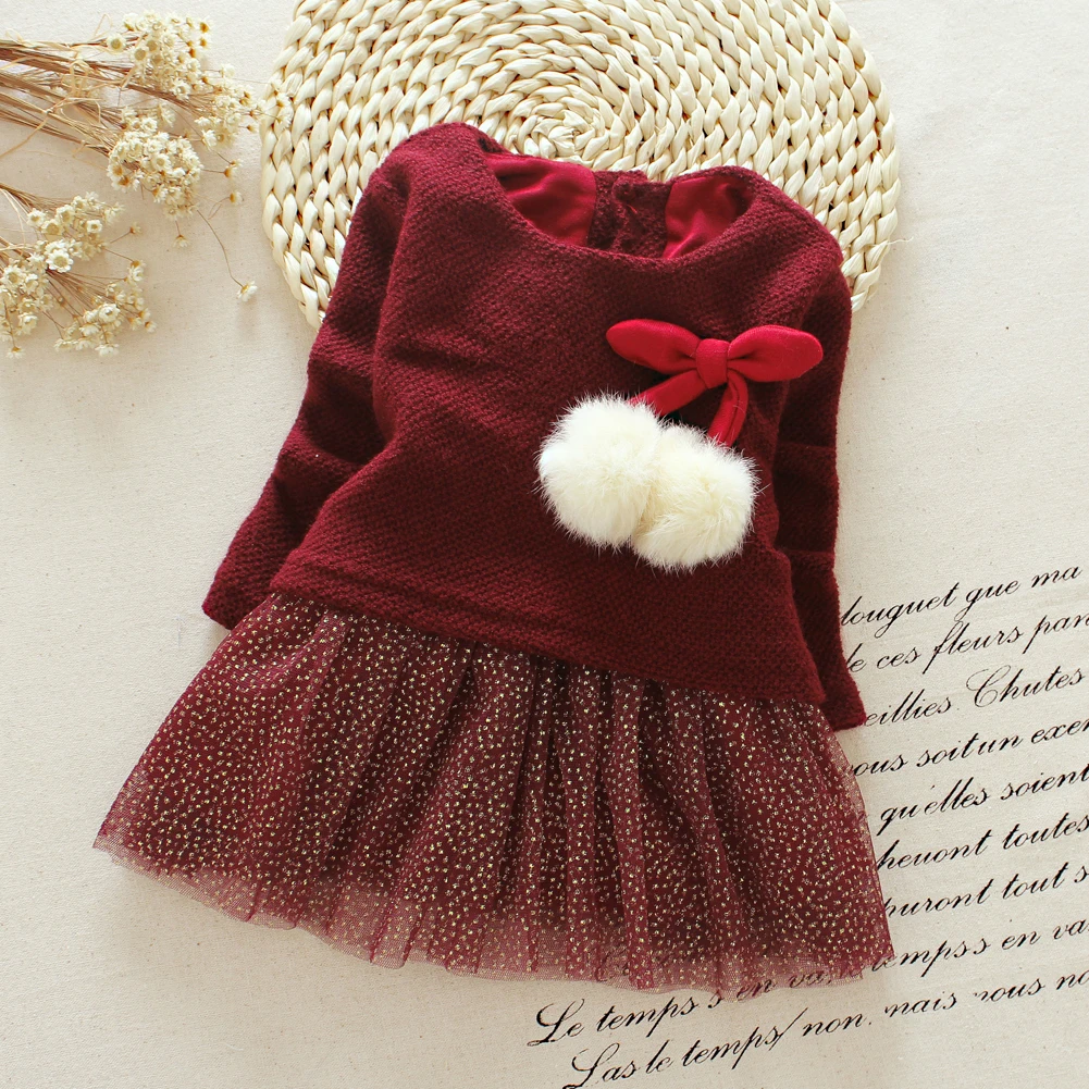 Newborn Baby Girls Princess Dress Knit Sweater Tops Lace Bowknot Dresses Clothing 0-24M