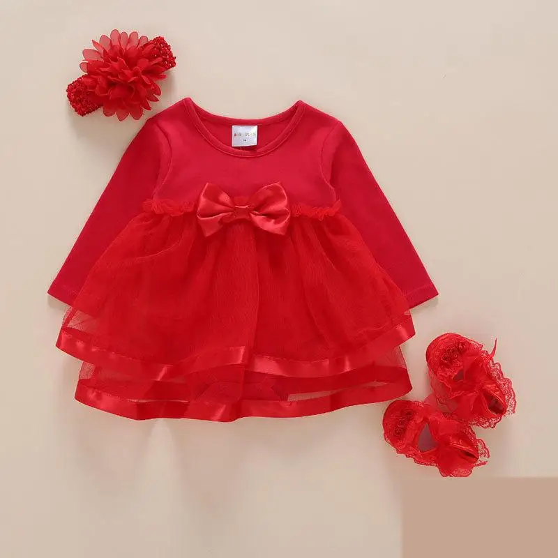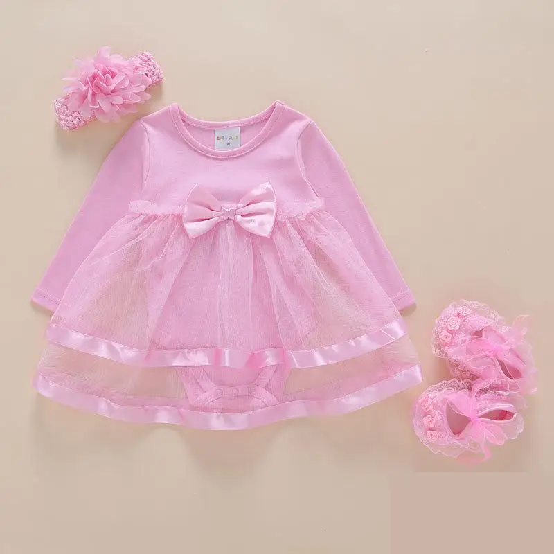 Newborn Girls Dresses Clothing 2017 Fashion Autumn Cotton Bowknot Birthday Baby Girls Dress Solid Princess Baby Clothes 4ds037