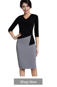 Nice-forever Vintage Ladylike Sexy Lace top 3/4 Sleeve O-Neck Peplum Tunic Bodycon Women Wear to Work Office Pencil Dress B360