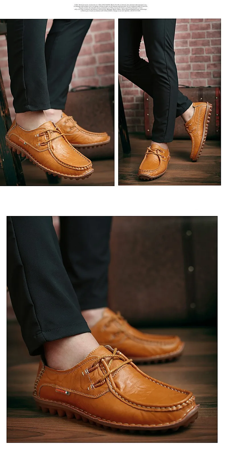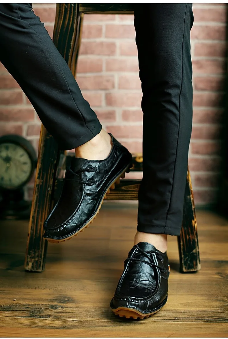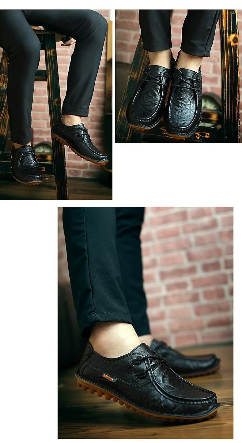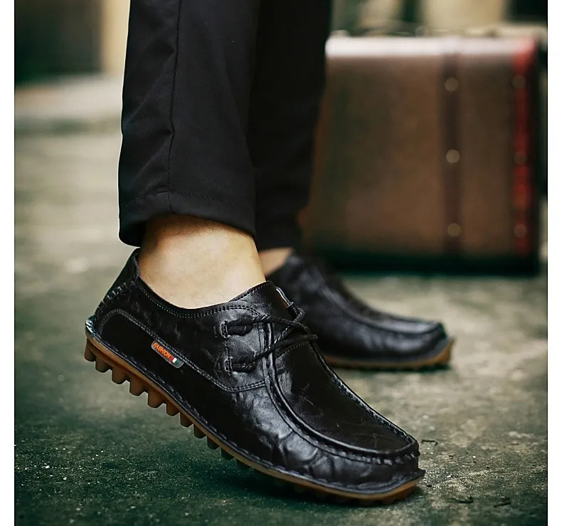 ODMORP New Fashion Men's Shoes Casual Leather Flats Brown Soft Shoes For Men Business Dress Shoes Black Zapatos Hombre