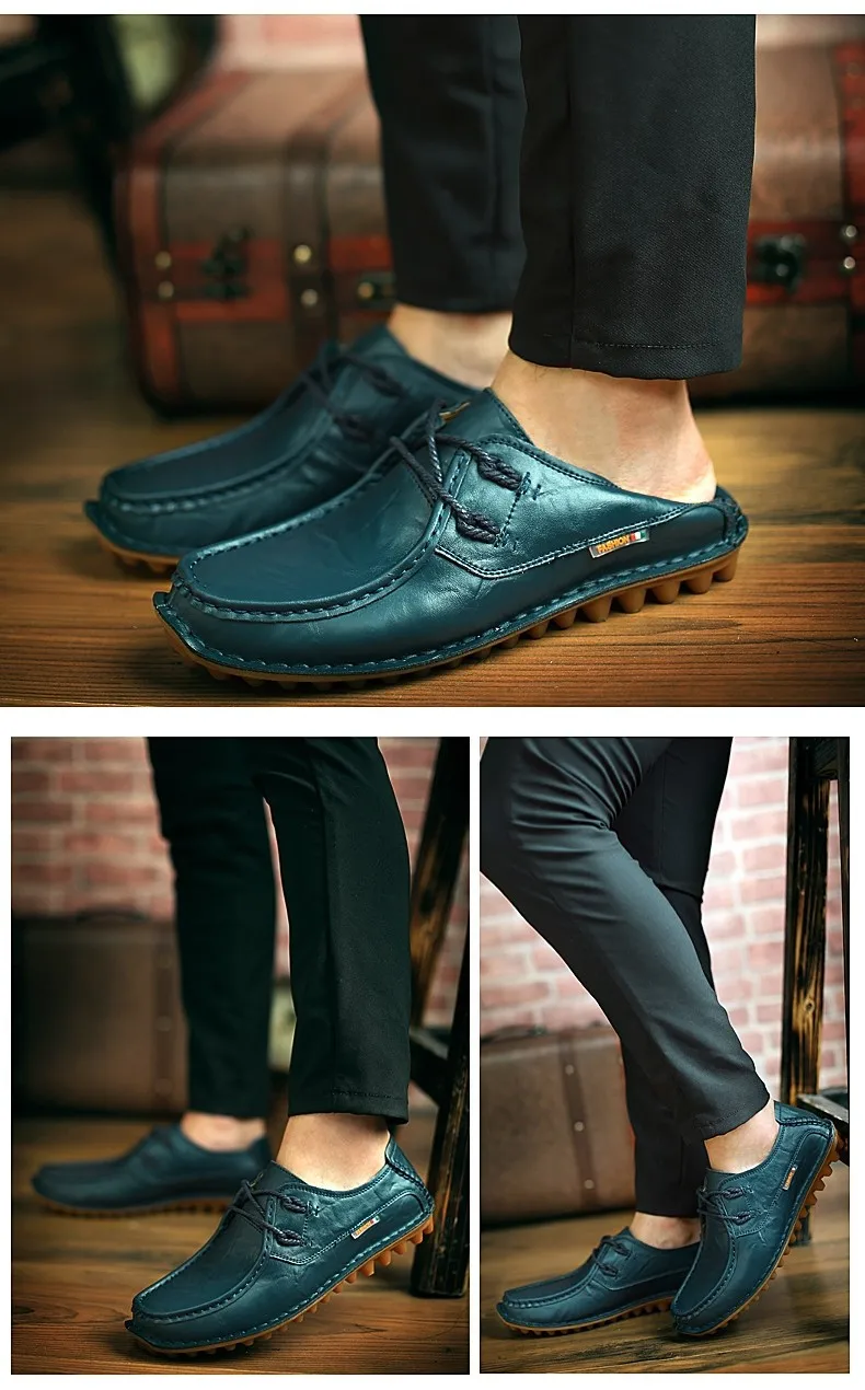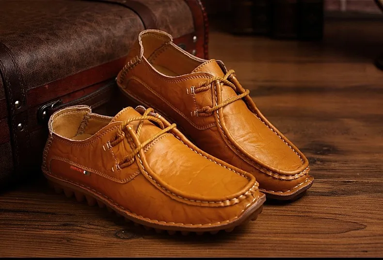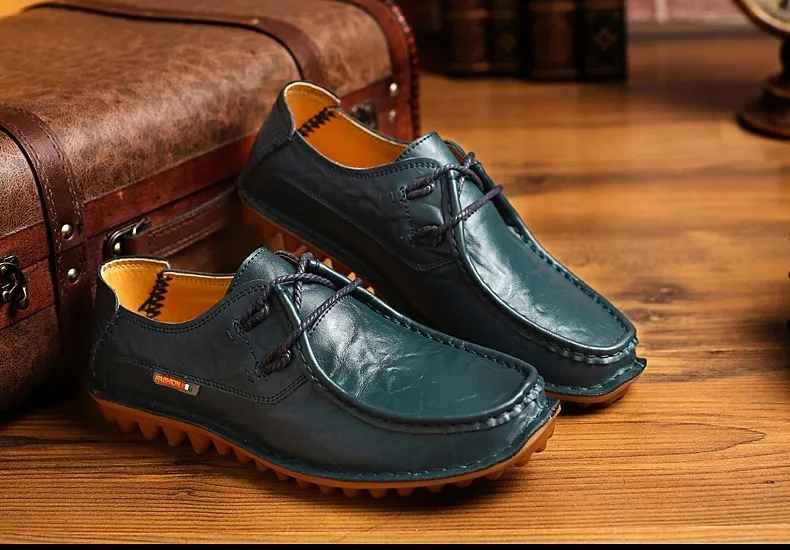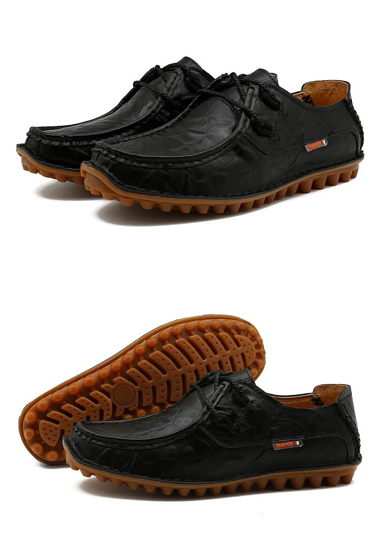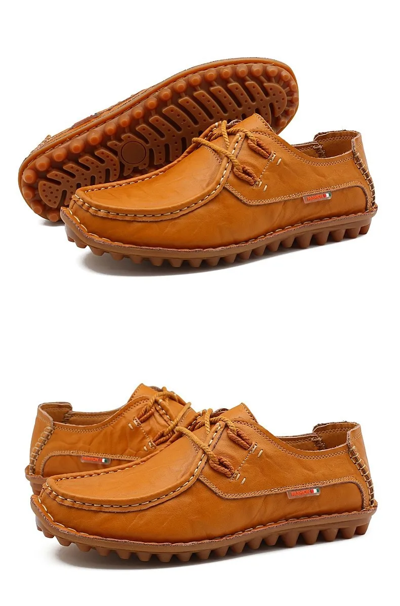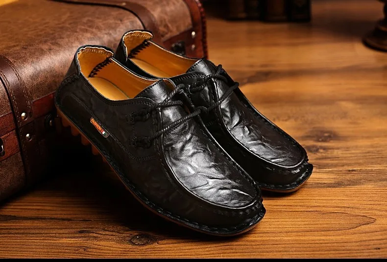ODMORP New Fashion Men's Shoes Casual Leather Flats Brown Soft Shoes For Men Business Dress Shoes Black Zapatos Hombre