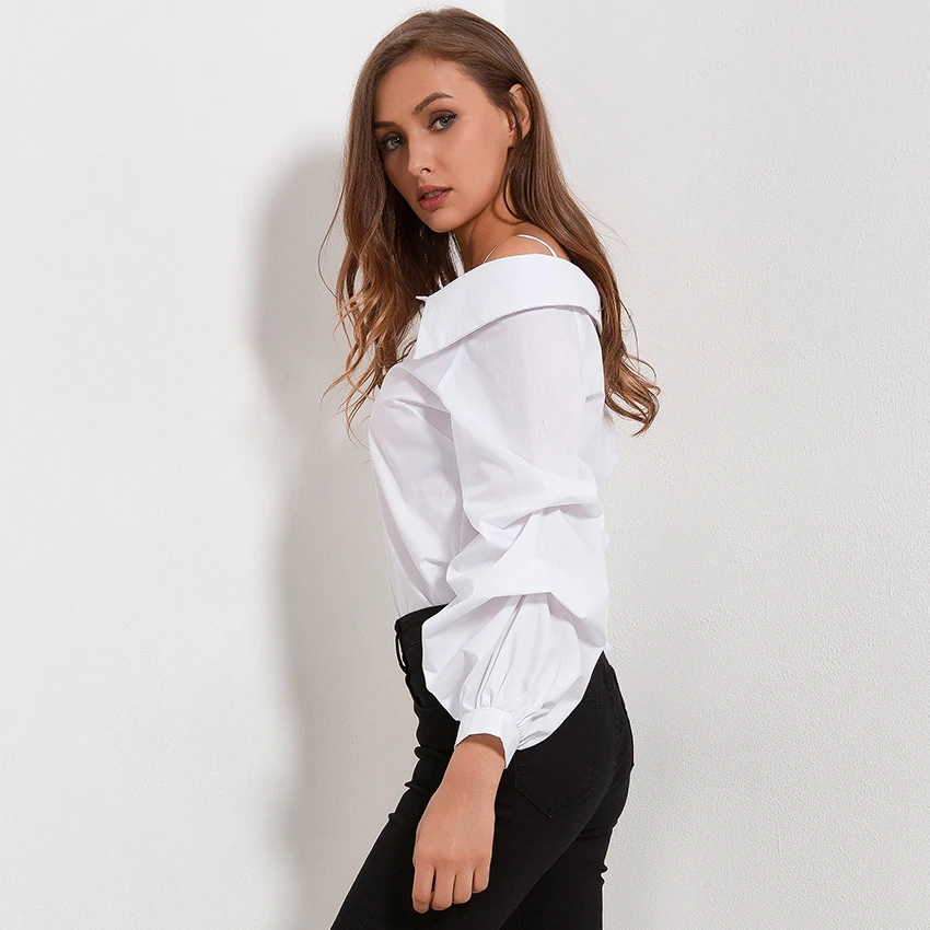 Gender: Women; Collar: Turn-down Collar;Material: Polyester,Cotton; Sleeve Length(cm): Nine Quarter;Model Number: 7839-135; Style: Streetwear;Clothing Length: Regular; Brand Name: monysa;Pattern Type: Solid; Fabric Type: Broadcloth;Sleeve Style: lantern Sleeve; Decoration: Folds;Women Clothing : Womens Tops And Blouses 2018 New Fashion; White Shirt Women: Off Shoulder Top Women;White Blouse Women: Cotton Shirt Women;