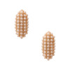 Gold Metal Oval Stud Earrings Featuring Cream Pearl and Rhinestone Detail. 1 inch wide